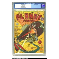 Planet Comics #7 (Fiction House, 1940) CGC VG/FN 5.0 Cream to off-white pages. The uncredited cover artists between Will Eisner and Lou Fine on the earliest issues, and Dan Zolnerowich beginning with #10, were coming up with some doozies. Just take a look! Nick Cardy, Bob Powell, Gene Fawcette, and Charles Quinlan contribute story art. Overstreet 2003 VG 4.0 value = $400; FN 6.0 value = $600. Important notice: Heritage usually auctions material at the rate of 200-250 lots per hour. On some occasions eBay Live bid software or the Internet may not be able to keep up with the pace of the auction. We recommend placing a realistic absentee bid now as insurance to avoid disappointment. Occasionally the auctioneer may eliminate or reject an eBay Live bid, and the auctioneer may also reopen a lot after the close of the eBay live bidding (usually because we missed an audience bid), and may reject your bid even if it shows you as the winning bidder. By bidding via eBay Live, you agree that Heritage may award the lot to another bidder at its sole discretion under the circumstances described above or any other reasonable circumstances. Also please note that all Heritage lots purchased through eBay Live carry a 20% Buyer's Premium. Please make sure you read the Terms and Conditions before you bid.