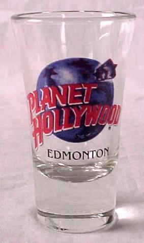 This is a case of 144 shot glasses from Planet Hollywood EDMONTON. They are in mint condition, and come in the original box. These shots are now rare, because the location is no longer open. Each 3 1/2" tall flared glass features the blue globe and red lettered Planet Hollywood logo. Underneath in black lettering is the city name.