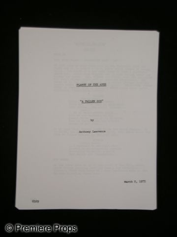 This is a lot of (2) scripts from the 1974 short lived sci-fi television series 'Planet of the Apes.' After the sucess of the Apes films, a 14 episode TV series was produced starring one of the original cast members Roddy McDowall, this time portraying Galen, a new character who ends up helping two stranded human astronauts escape from the ruling Gorillas who want them all dead. The scripts are for two episodes that were never filmed, 'A Fallen God,' and 'Hostage.' (measures approx. 8 1/2"x 11" ea.)