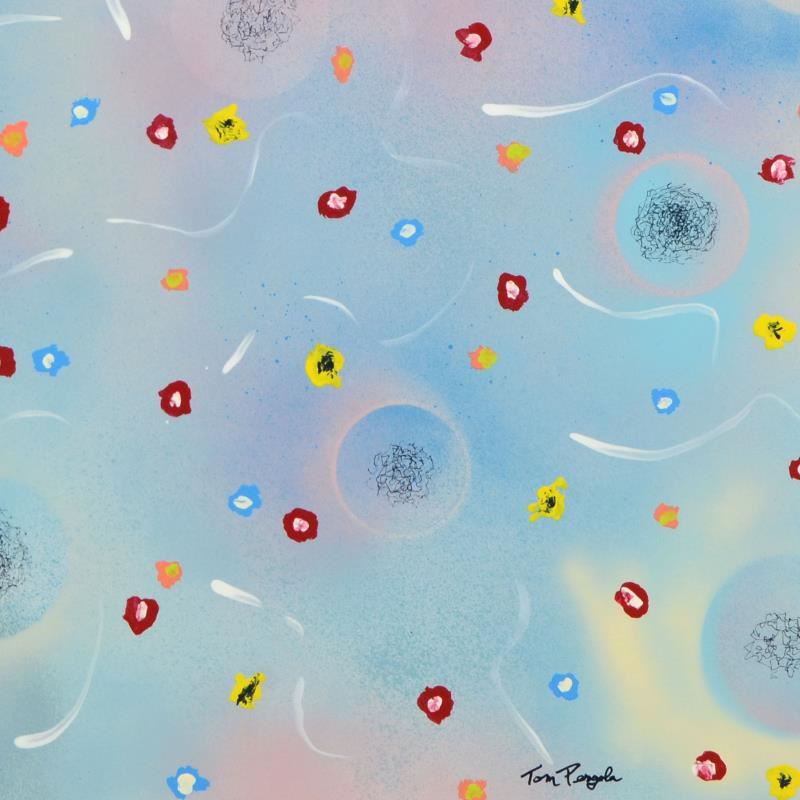 "Planet X" is an original mixed media on canvas by Tom Pergola, hand signed by the artist. This piece comes gallery wrapped. Includes Letter of Authenticity. Measures approx. 40" x 30" (image).