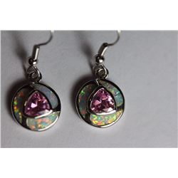 GENUINE 12X6 MM. TOPAZ AMETHYST PERIDOT 925SILVER EARRING 14K WHITE GOLD COATING; STONE SHAPE -MIXED SHAPE;STONE DIMENSION- 12 X 6 MM. , 6 X 3 MM. , 5