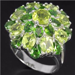 925 Sterling Silver.....RING SIZE -7.25;STONE SHAPE- ROUND PORTUGUESE CUT;STONE DIMENSION2.5 MM.;MAIN STONE WEIGHT- 2.6 CARAT;COLORGREEN;CLARITYIF TO