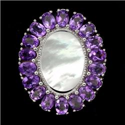 925 STERLING SILVER;PLATE-14K WHITE GOLD;RING SIZE-7;MAIN STONE-AMETHYST;OTHER GEMS-MOTHER OF PEARL;TOTAL WEIGHT32.75 CT (TOTAL WEIGHT OF SILVER + STO