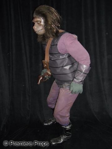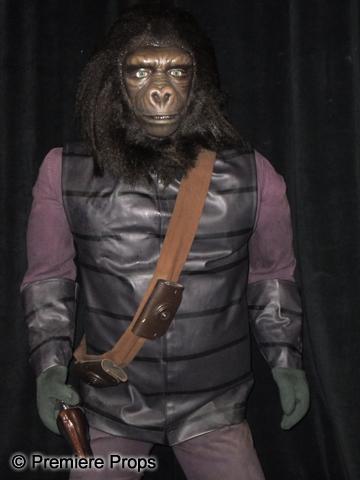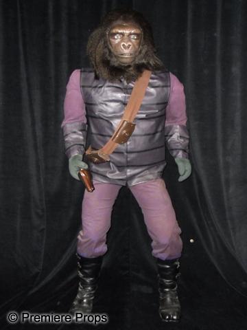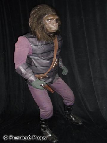 Planet of the Apes (1968) - A life size figure of an Ape Soldier wearing a screen used costume with a silicone head fitted with glass eyes and human hair. Full size and very realistic, this is an impressive display in any setting from an iconic and very collected film. Oversized item. Additional shipping charges required.
