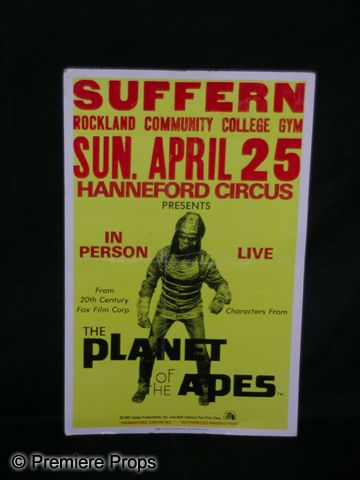 A very obscure item. From the 1968 Sci-Fi classic 'Planet of the Apes,' this is a cardboard stand-up advertisement for a meet the characters event at the 'Hanneford Circus' at the Suffern/Rockland Community College. Shows signs of being folded, but is still a very unique item from this film. (Measures approx. 14" x 22"). Oversized item. Additional postage required.
