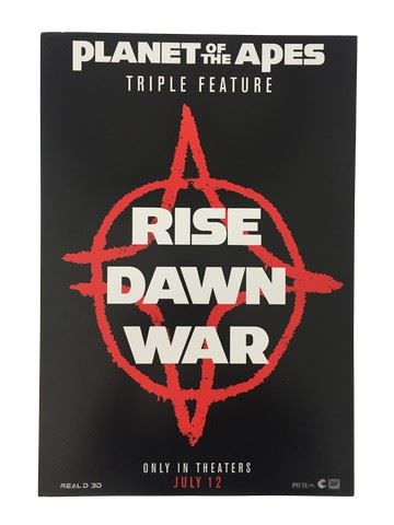 Planet of The Apes "Rise of the Planet of the Apes", "Dawn of the Planet of the Apes" and "War for the Planet of the Apes" double sided trilogy poster. (13"x19")