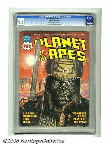 <B>Planet of the Apes (Magazine) #17 (Marvel, 1976) CGC NM/MT 9.8 Off-white to white pages.</B></I> Bob Larkin cover. Tom Sutton and Alfredo Alcala art. Overstreet 2005 NM- 9.2 value = $22. CGC census 1/05: 1 in 9.8, none higher. <I>From the collection of Chris Bell.</B></I>