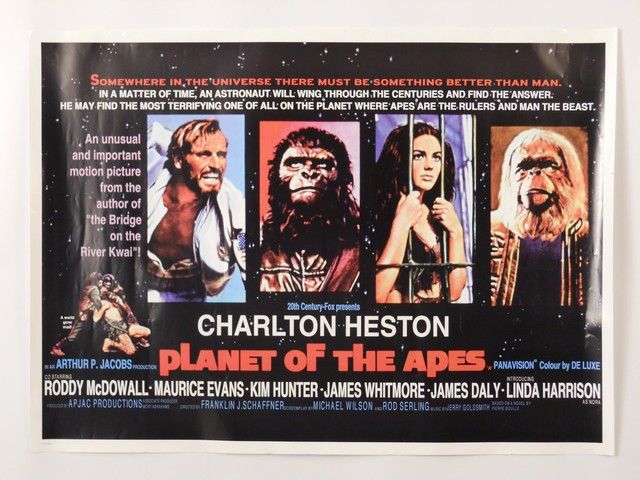 A reproduction of one of the original movie posters "Planet of the Apes" (1968). (Approx. 25.5" x 35.5").