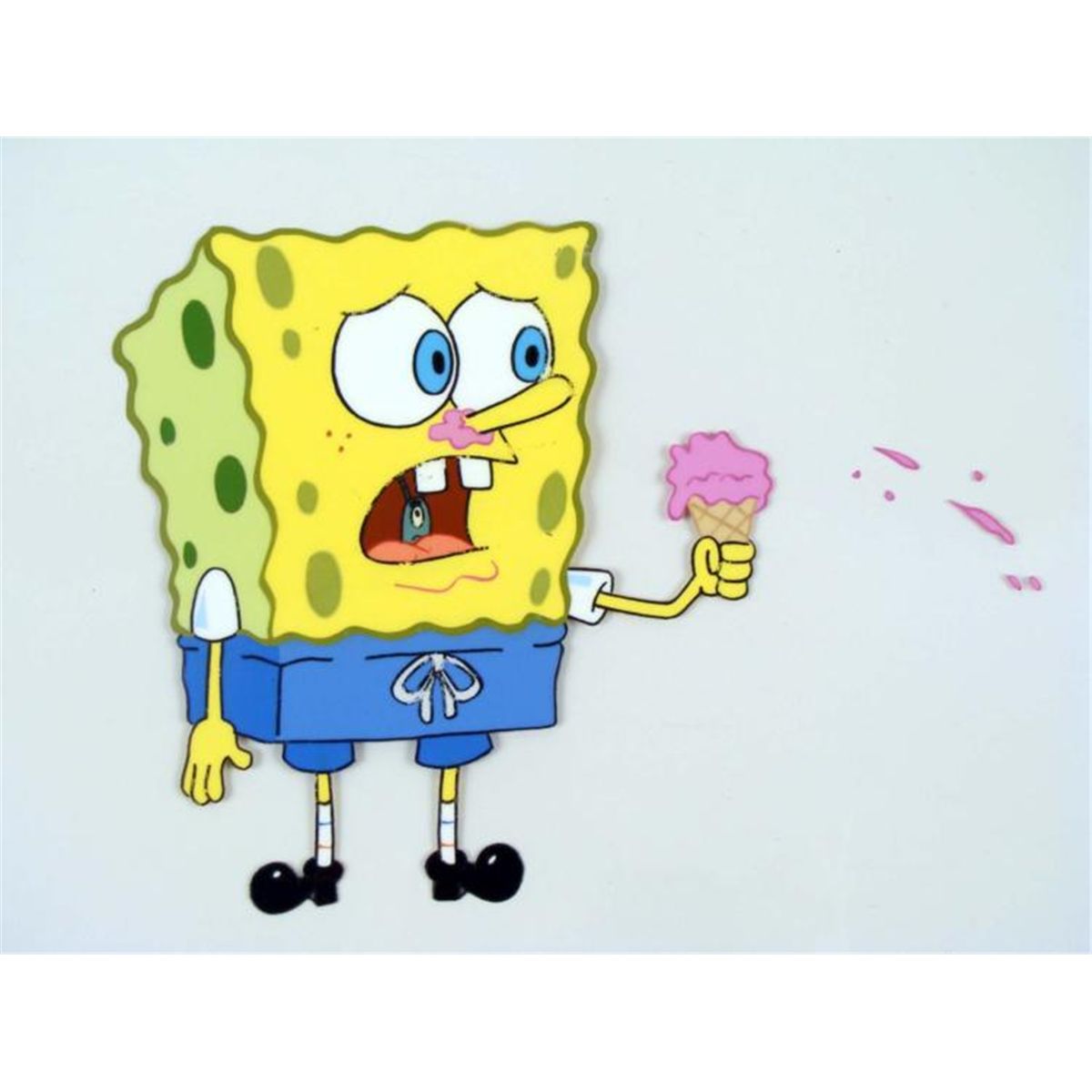 This original animation cel is from the Nickelodeon TV showSpongeBob Squarepants. The story takes place under the deep blue sea in Bikini Bottom, where SpongeBob resides. SpongeBob, who is a yellow,porous sponge, is your typical happy-go-lucky character, as he is always cheerful and enjoys making people laugh. Patrick Star, SpongeBob's neighbor who is a starfish, is your average children's show idiot, as he boasts knowing nothing and is often getting himself into ridiculous situations. Between the homes of these two lies the home of the miserable Squidward, a squid, who is known for being grouchy and playing tricks on SpongeBob and Patrick. Both SpongeBob and Squidward work at the Krusty Krab, a fast food business run by the greedy money-loving Mr. Krabs, a crab, the arch rival of the evil, possibly misunderstood, Plankton. Another neighbor, Sandy Cheeks, an athletic squirrel who normally wears an astronaut's space suit, was introduced in "Tea at the Treedome." She spends most of her time inventing and experimenting. * Plankton made me do it... * * Original Production Animated Cel Overall Size of Cel: 10 1/2" x 12 1/2" Very Good ConditionThis is an original hand-painted cel set-up used in the production of an episode of "SpongeBob SquarePants." Each one-of-a-kind set-up represents a slight change in position of the characters. When individually photographed and projected in rapid succession, the images appear to move. * To create production cels, the original animator's drawing is transferred onto an acetate cel (by hand-inking and/or photo copying). The cel is then hand-painted on the reverse side. * The cel is ready to be matted and framed. The animator's notations are at the left side of the cel. There is some paint fade to Spongebob and Plankton's outline. * *