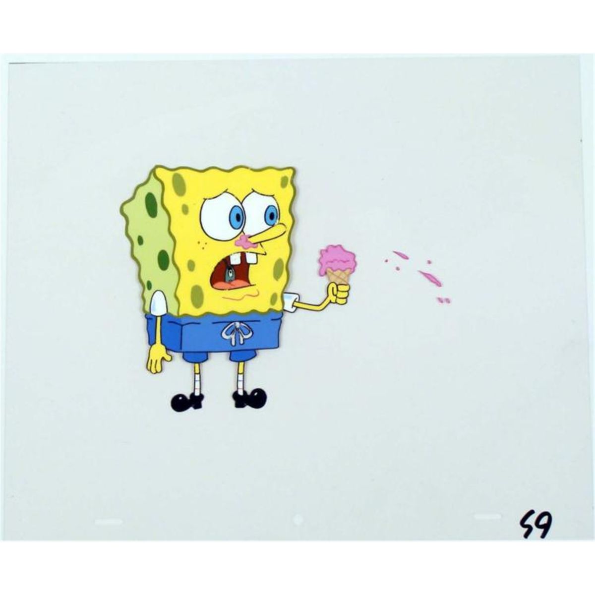 This original animation cel is from the Nickelodeon TV showSpongeBob Squarepants. The story takes place under the deep blue sea in Bikini Bottom, where SpongeBob resides. SpongeBob, who is a yellow,porous sponge, is your typical happy-go-lucky character, as he is always cheerful and enjoys making people laugh. Patrick Star, SpongeBob's neighbor who is a starfish, is your average children's show idiot, as he boasts knowing nothing and is often getting himself into ridiculous situations. Between the homes of these two lies the home of the miserable Squidward, a squid, who is known for being grouchy and playing tricks on SpongeBob and Patrick. Both SpongeBob and Squidward work at the Krusty Krab, a fast food business run by the greedy money-loving Mr. Krabs, a crab, the arch rival of the evil, possibly misunderstood, Plankton. Another neighbor, Sandy Cheeks, an athletic squirrel who normally wears an astronaut's space suit, was introduced in "Tea at the Treedome." She spends most of her time inventing and experimenting. * Plankton made me do it... * * Original Production Animated Cel Overall Size of Cel: 10 1/2" x 12 1/2" Very Good ConditionThis is an original hand-painted cel set-up used in the production of an episode of "SpongeBob SquarePants." Each one-of-a-kind set-up represents a slight change in position of the characters. When individually photographed and projected in rapid succession, the images appear to move. * To create production cels, the original animator's drawing is transferred onto an acetate cel (by hand-inking and/or photo copying). The cel is then hand-painted on the reverse side. * The cel is ready to be matted and framed. The animator's notations are at the left side of the cel. There is some paint fade to Spongebob and Plankton's outline. * *