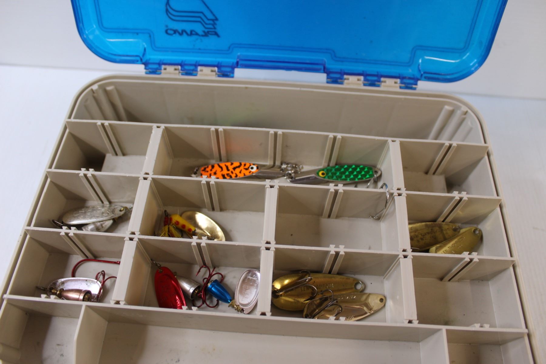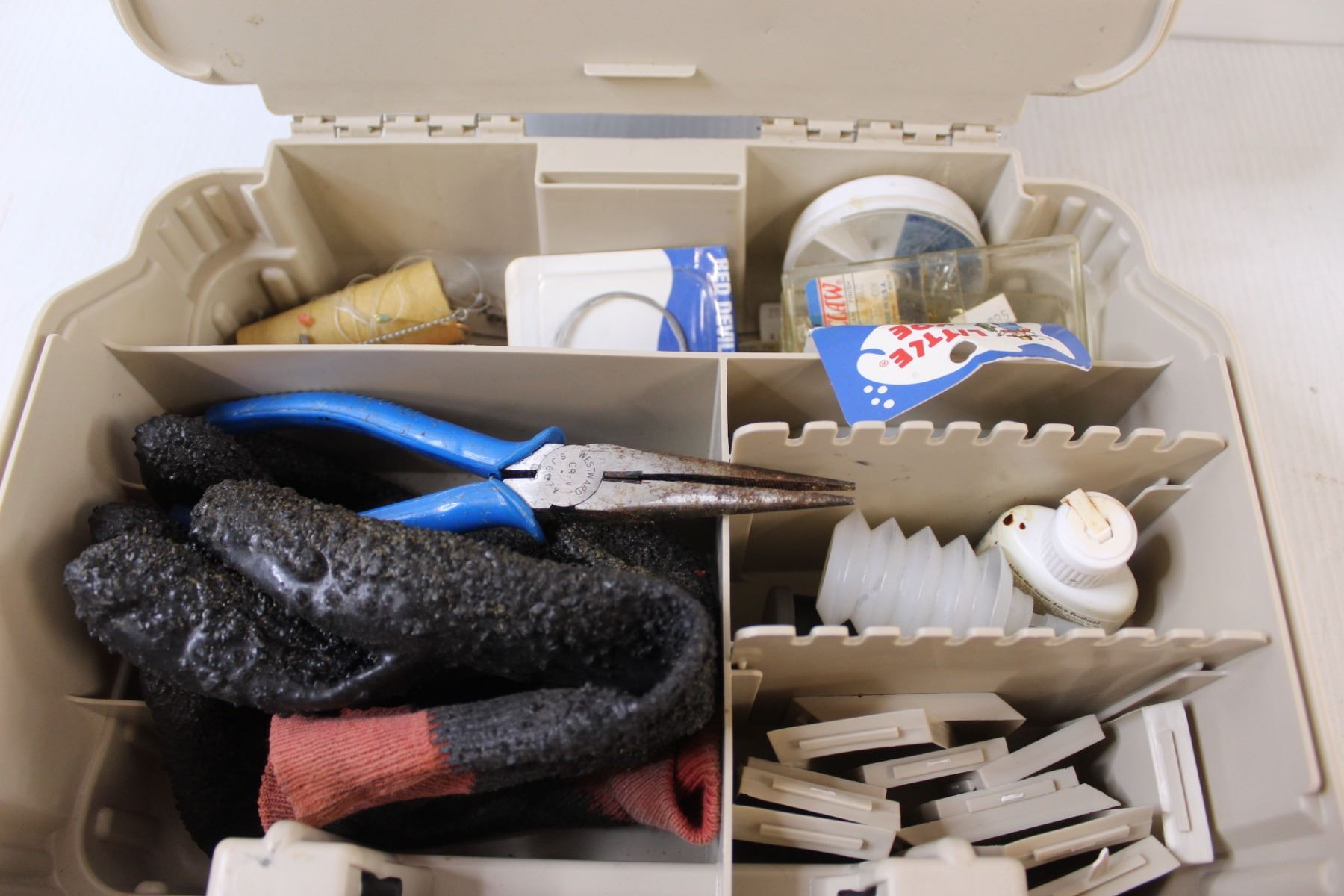 Plano Plastic Fishing Tackle Box w/Contents - 10" x 13" x 6"