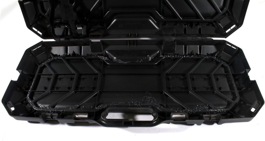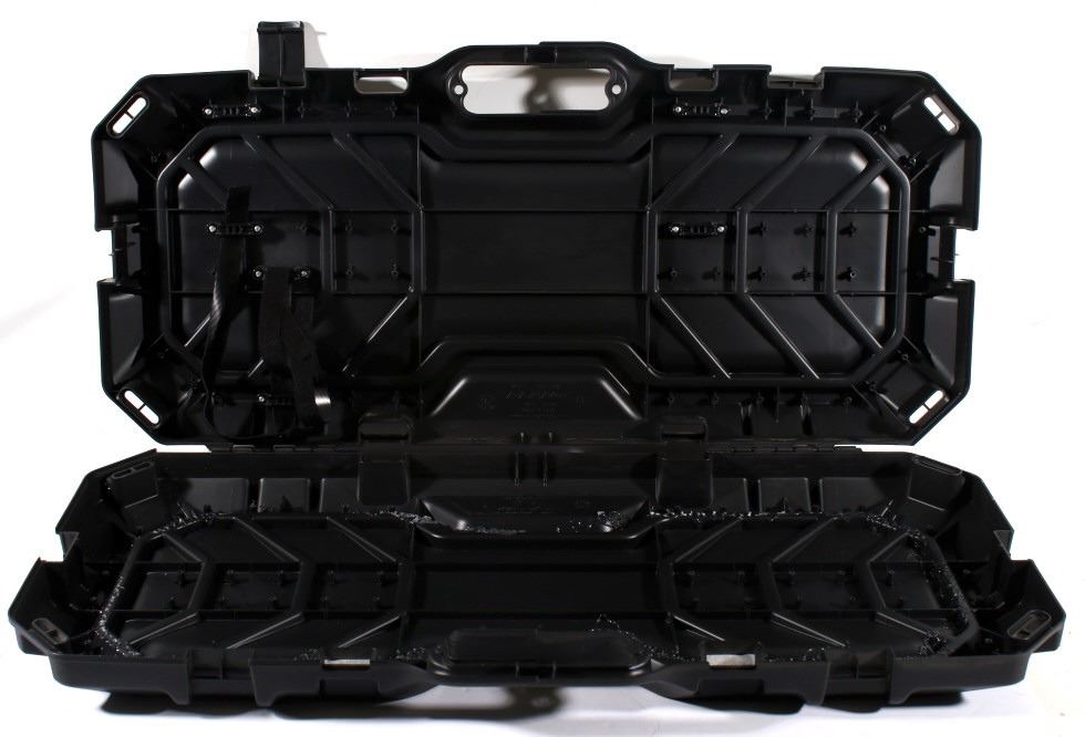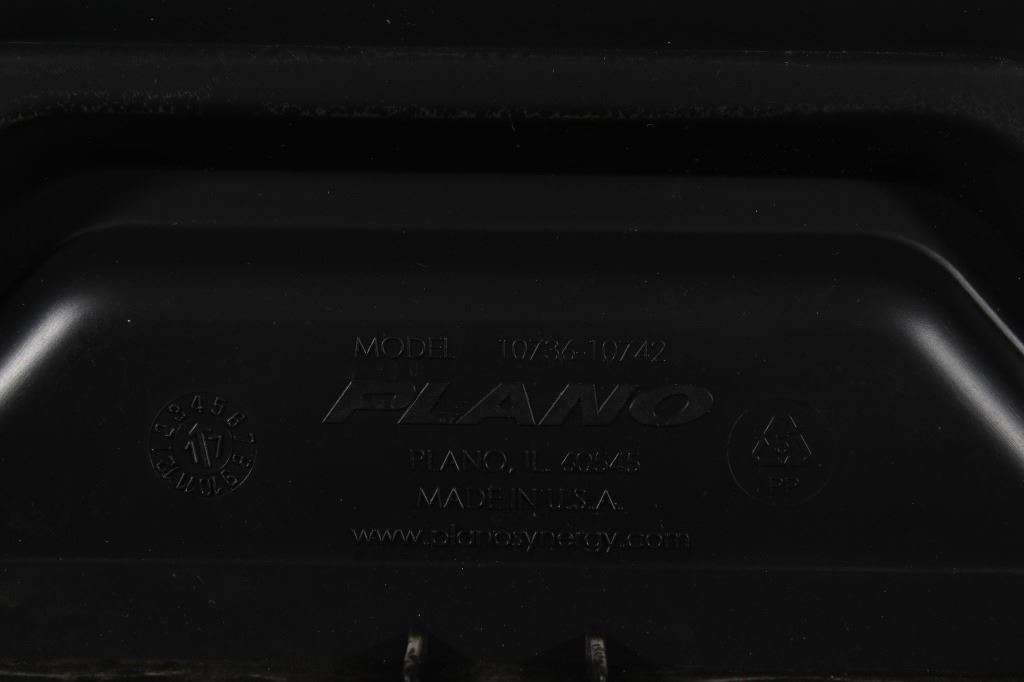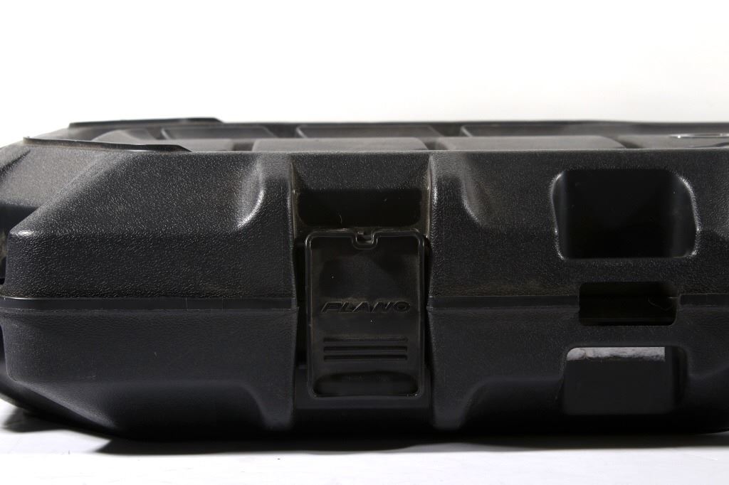 Offered in this lot we have Plano tactical gun carry case. The case shows injection molded plastic construction with clasps in the front. The exterior of the piece shows angled ridges and is marked "Plano - Made In U.S.A.". The interior of the piece is empty with lines of glue along the inside. The piece shows good condition overall. The case measures 38" long by 171/4" wide and 5 1/4" thick. Ben
