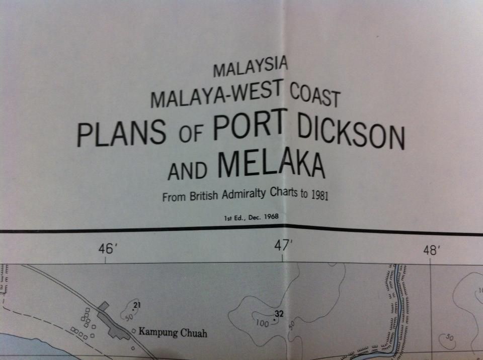 This is an actual Marine Chart of the Plans of Port Dickson and Melaka that were retrieved from a recycled ship. They are not framed and come complete with the original folds. Documentation will be provided from the auction company.