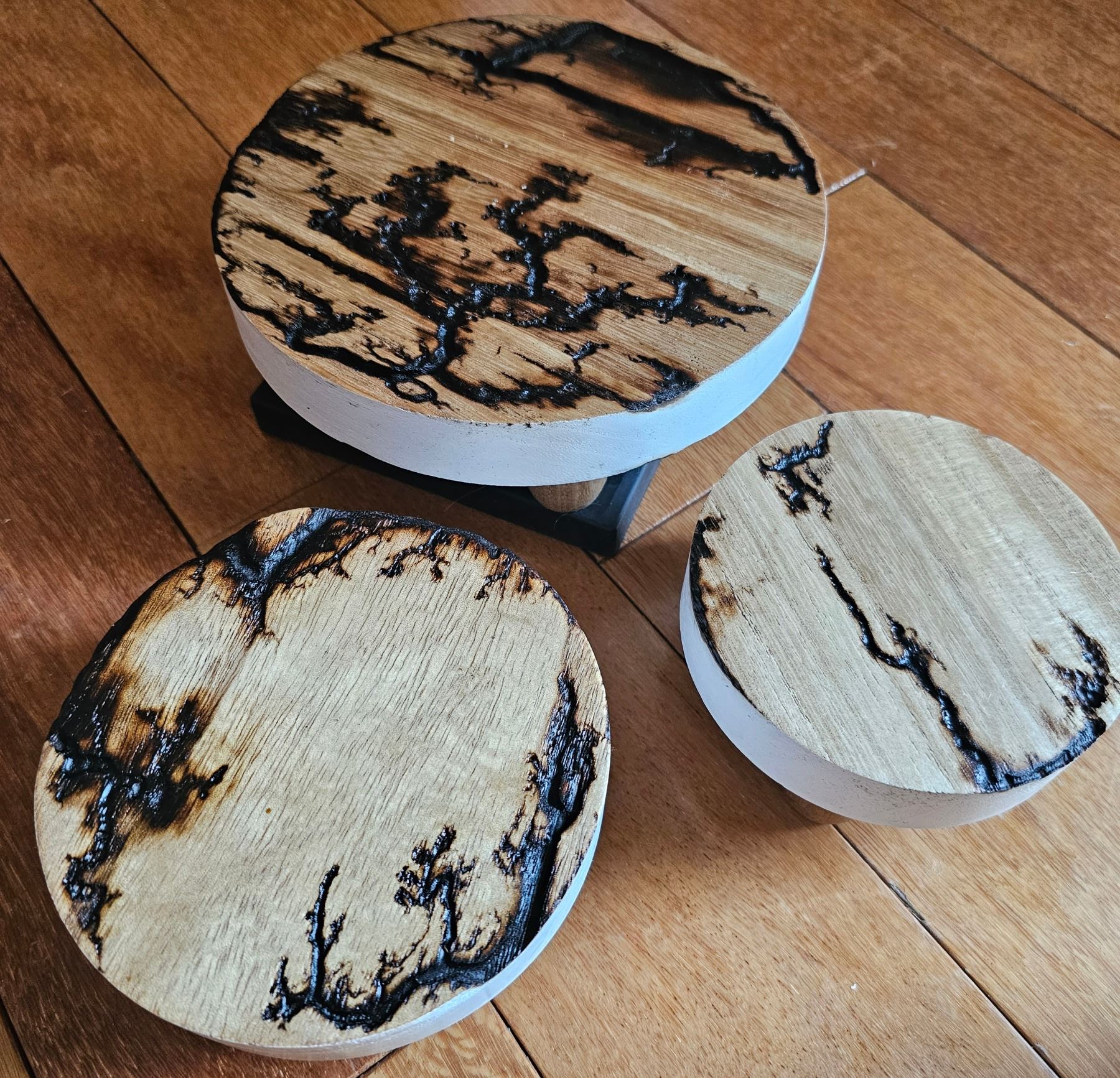 3 Pack of Frackled Wood Plant Pot Coasters, Brand New