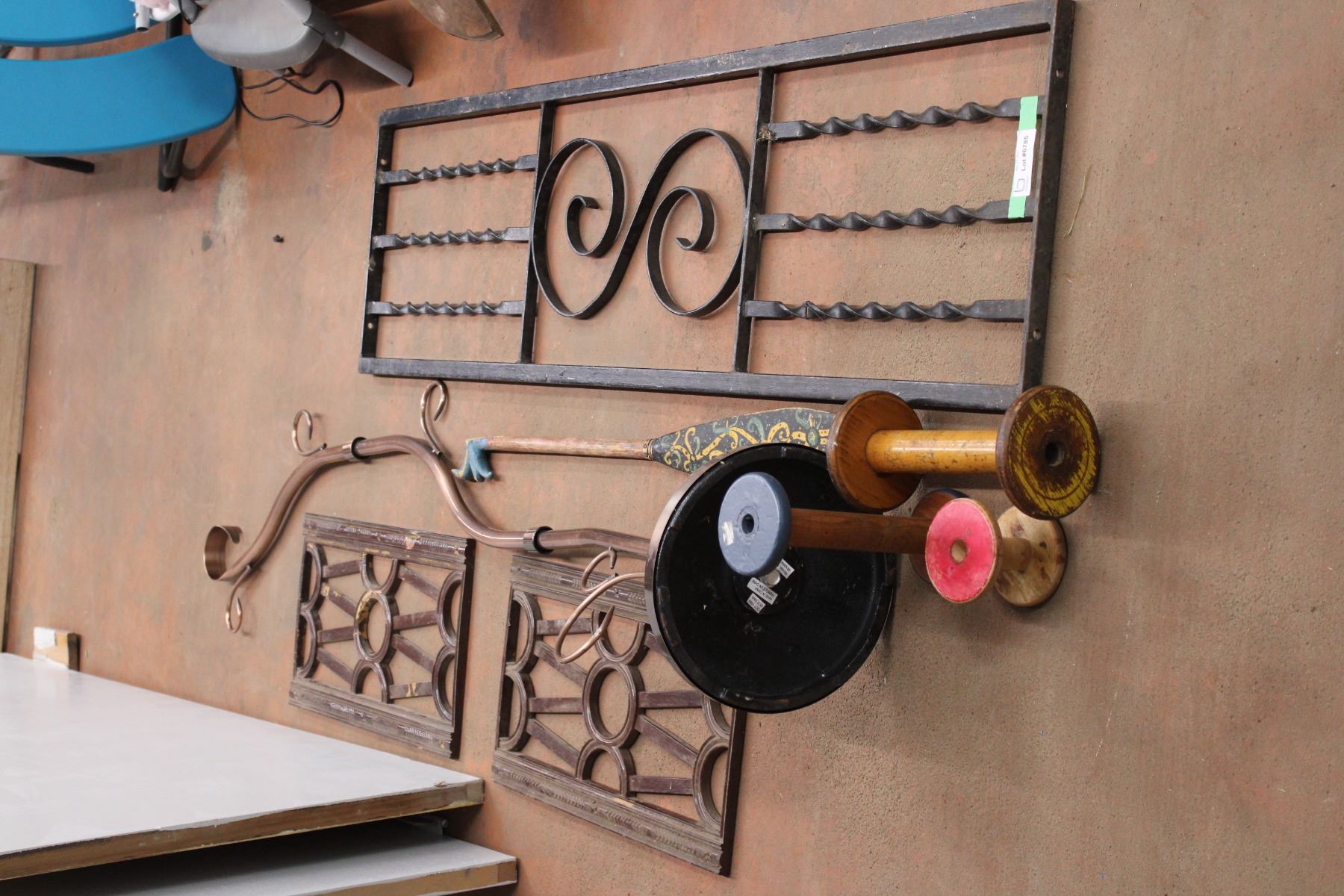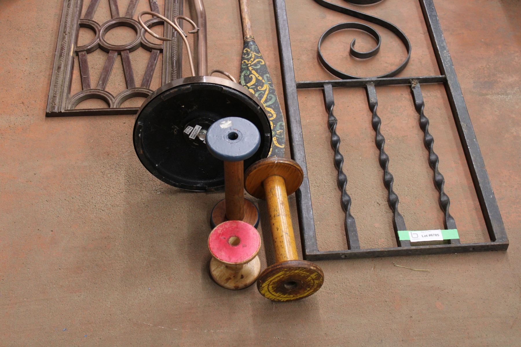 Plant Stand, Decorative Paddle, Metal Gate, Wooden Spools