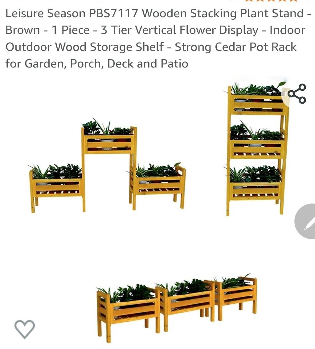 Versatile 3-tier wooden plant stand, ideal for outdoor and indoor use, durable cedar construction, new.