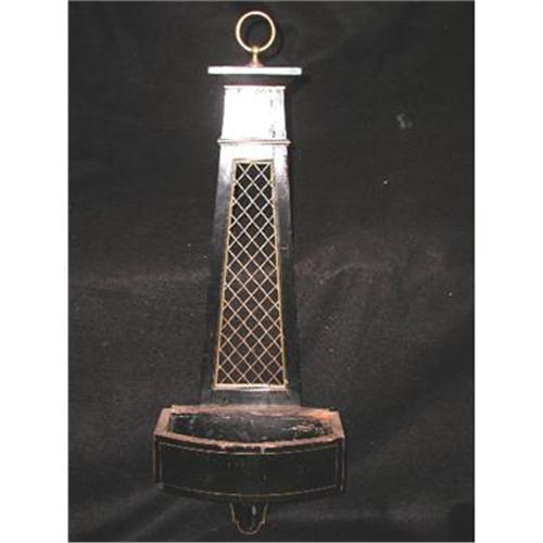 Black wooden heavy wall planter with brass trim was made by the well known Hekman Company, long synonymous with quality. Brass loop at top as well as brass wire grill in the center surrounded by wooden sides.Semi circular planting trough has a two inch support in the bottom center and is large enough for three small pots or a silk arrangement. Gilt trim accents. On the back the Hekman small catalog is still attached with rusty staple,dated 1955. Shows this piece as well as nesting tables etc. that the company had created for sale. In extremly good condition,small nicks to paint at the top lip of planter area. Measures 32H X 11L X 6D. Planter itself is 9.5L X 3.75W.
