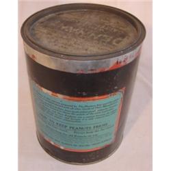 Planter's Pennant Salted Peanut tin. Stands 10 1/2" tall and has a dia. of 8 1/4". Original lid shows wear and tin body shows wear and loss to paint.