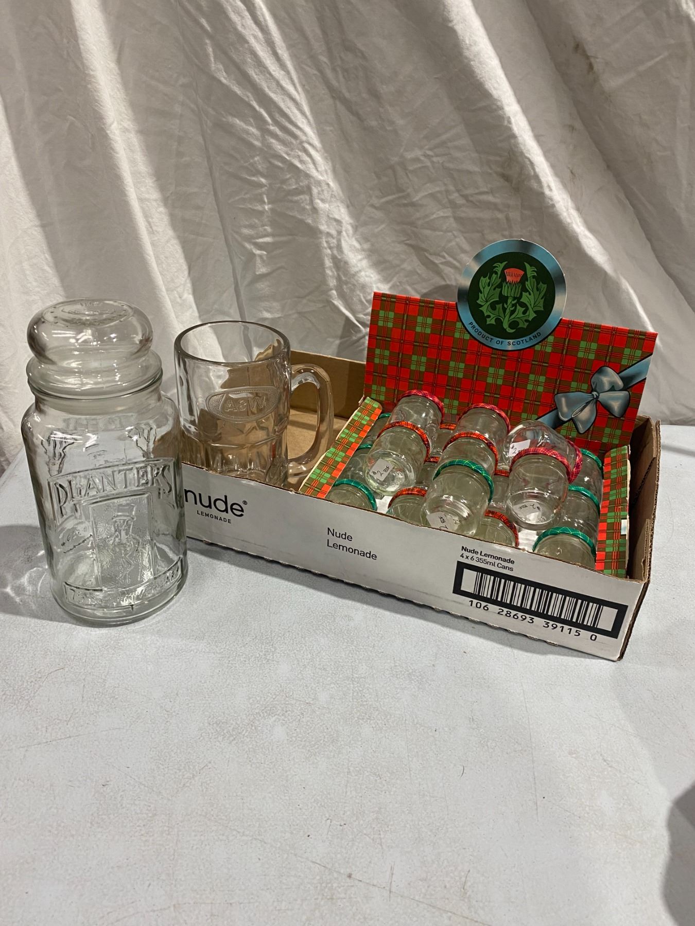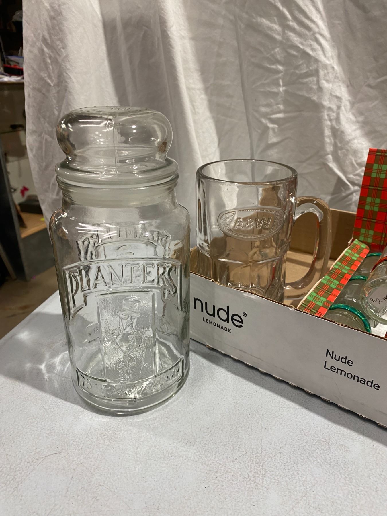 Planters jar, a&w mug and other jars
