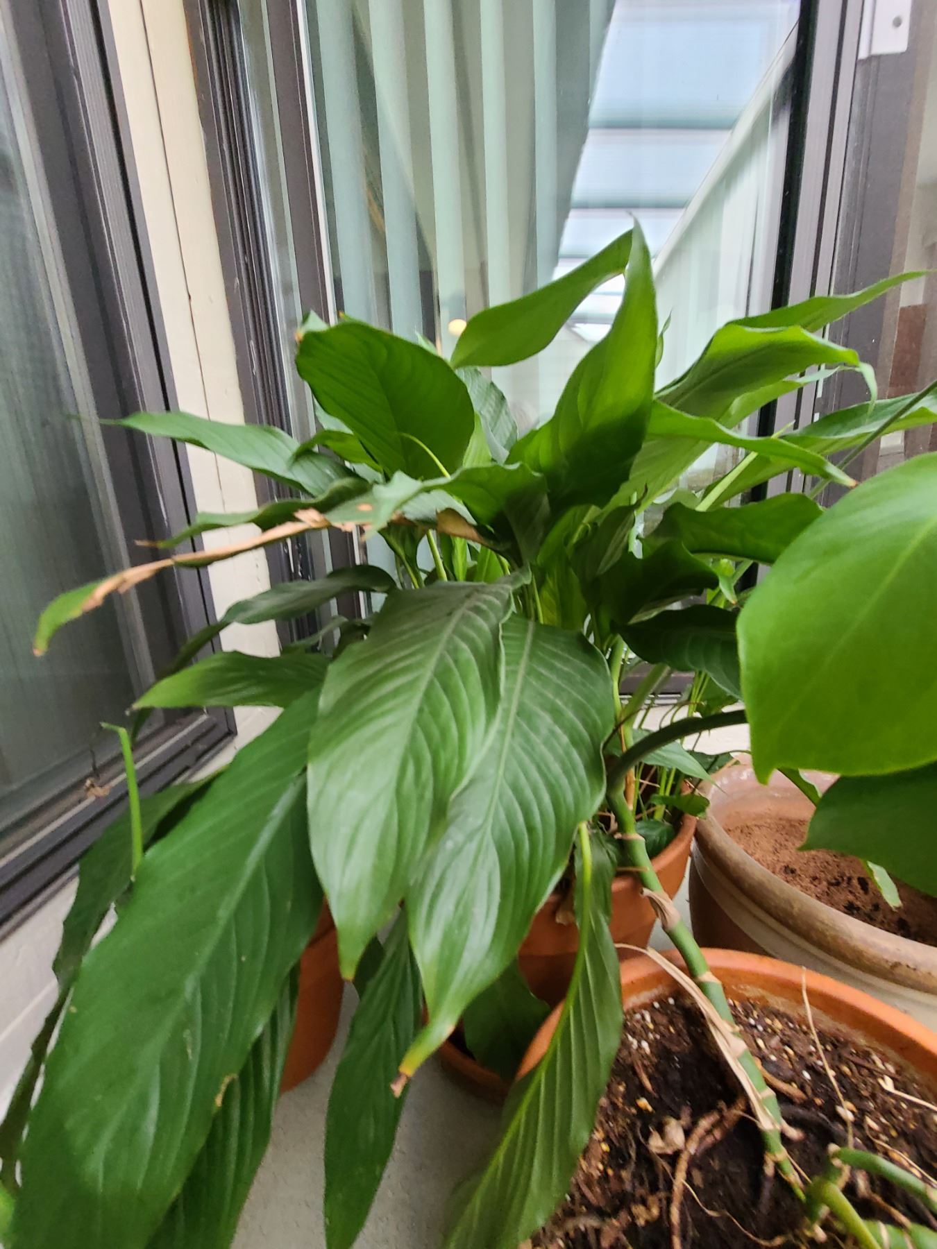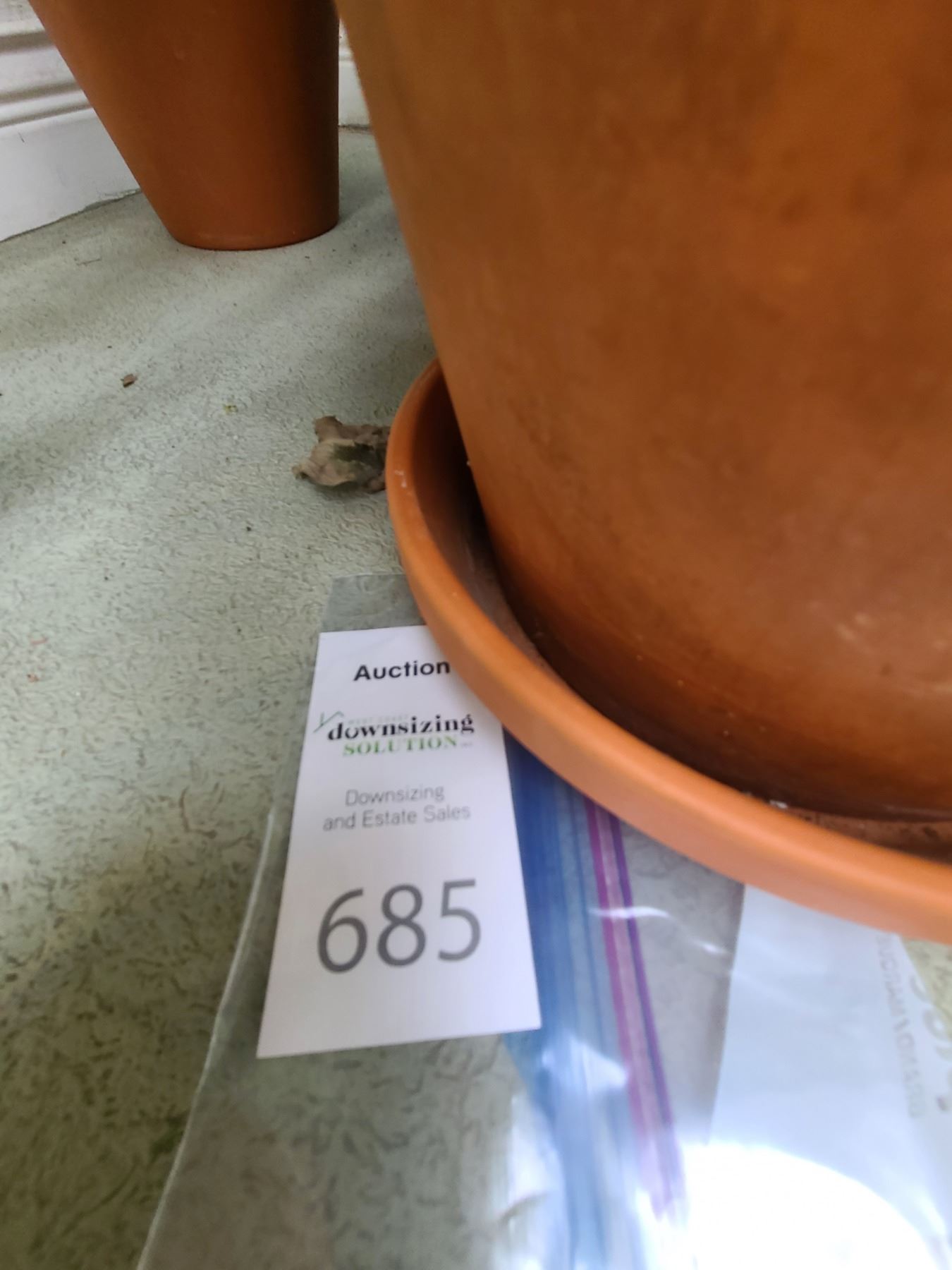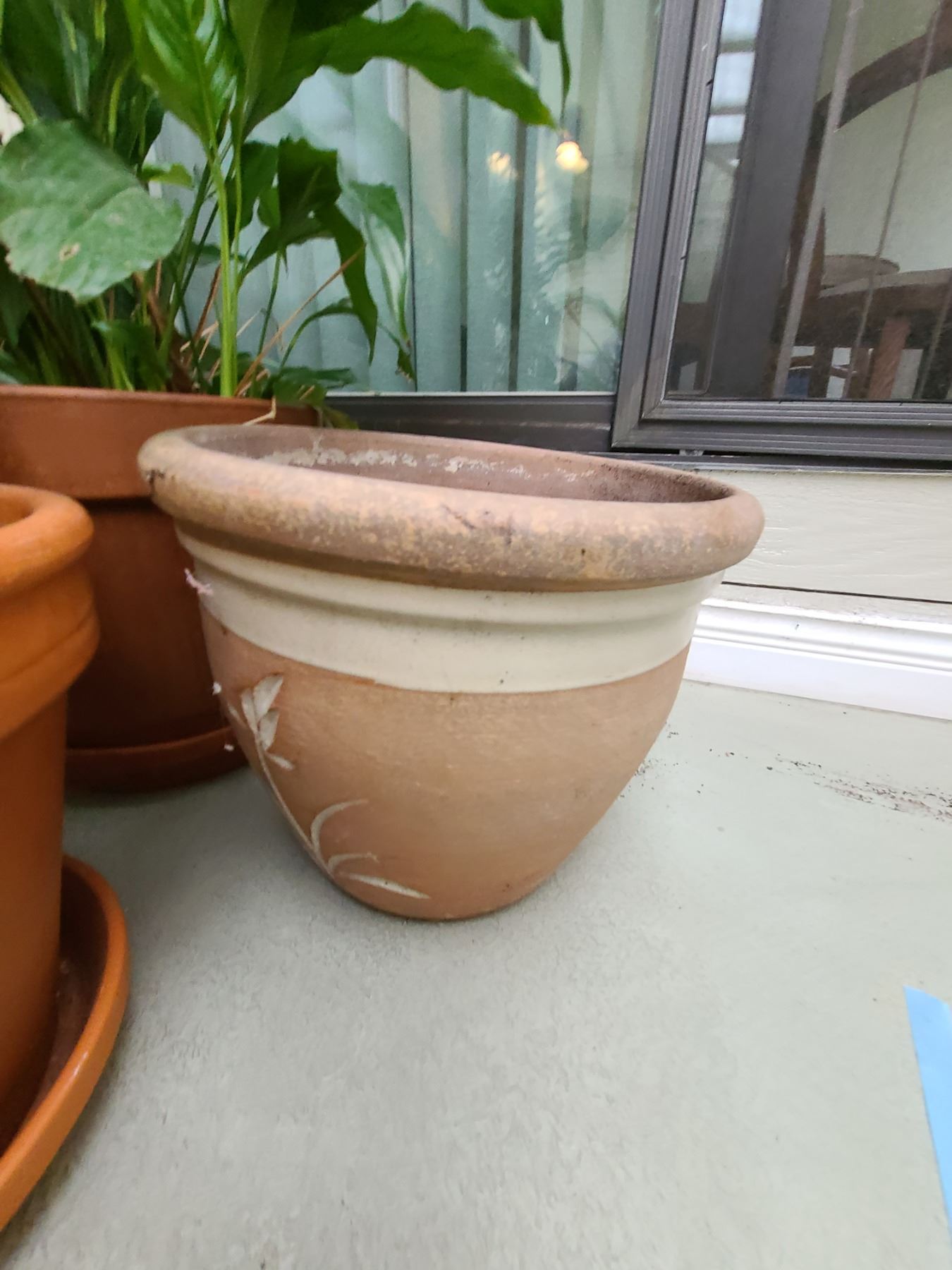 Two plants in containers and three extra pots. Bring help to move. Pickup at 9 am.