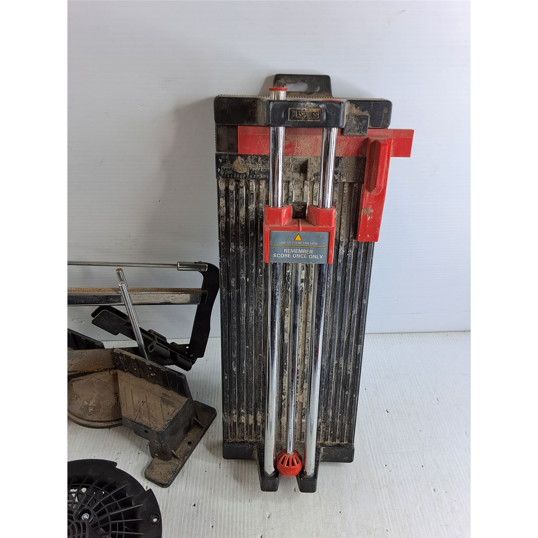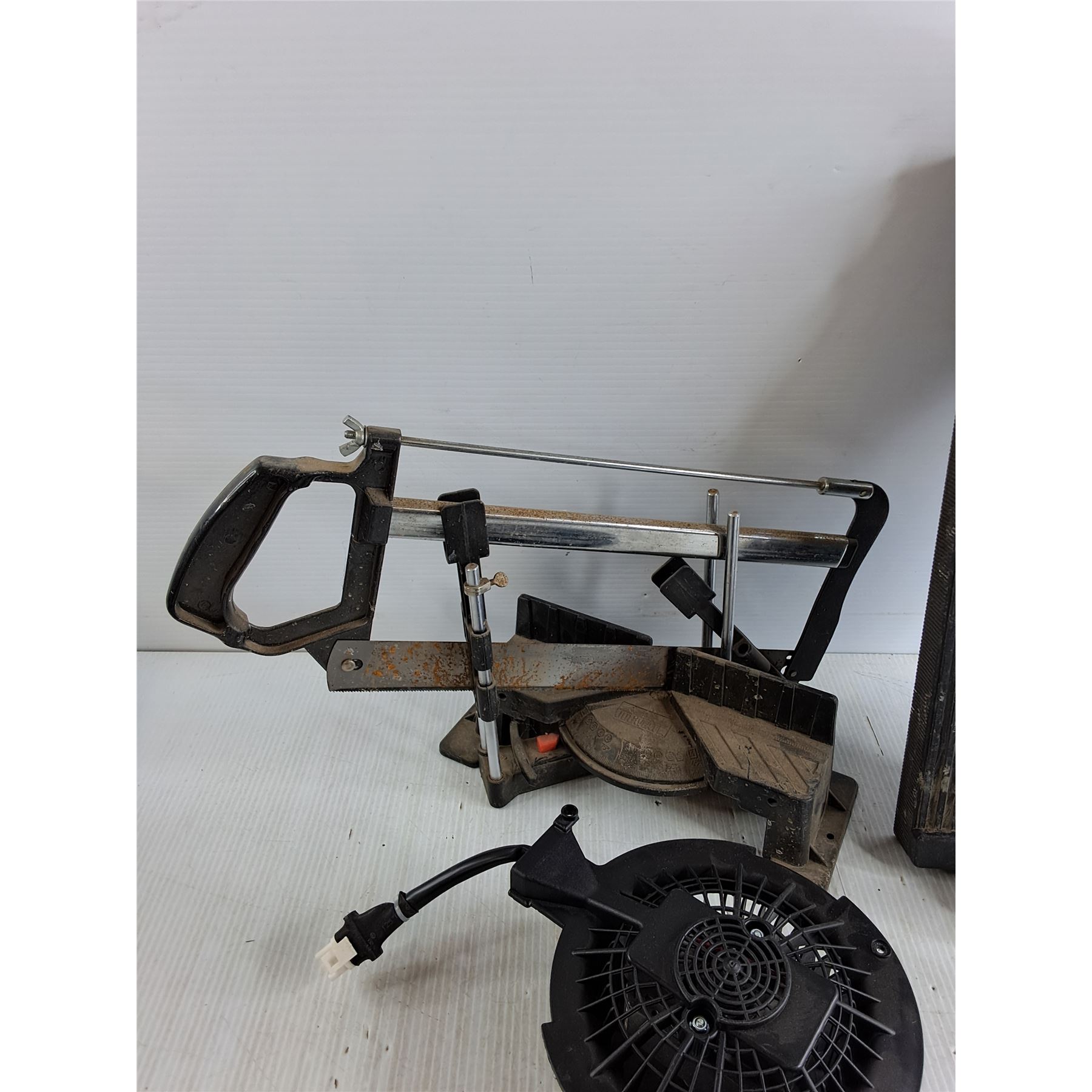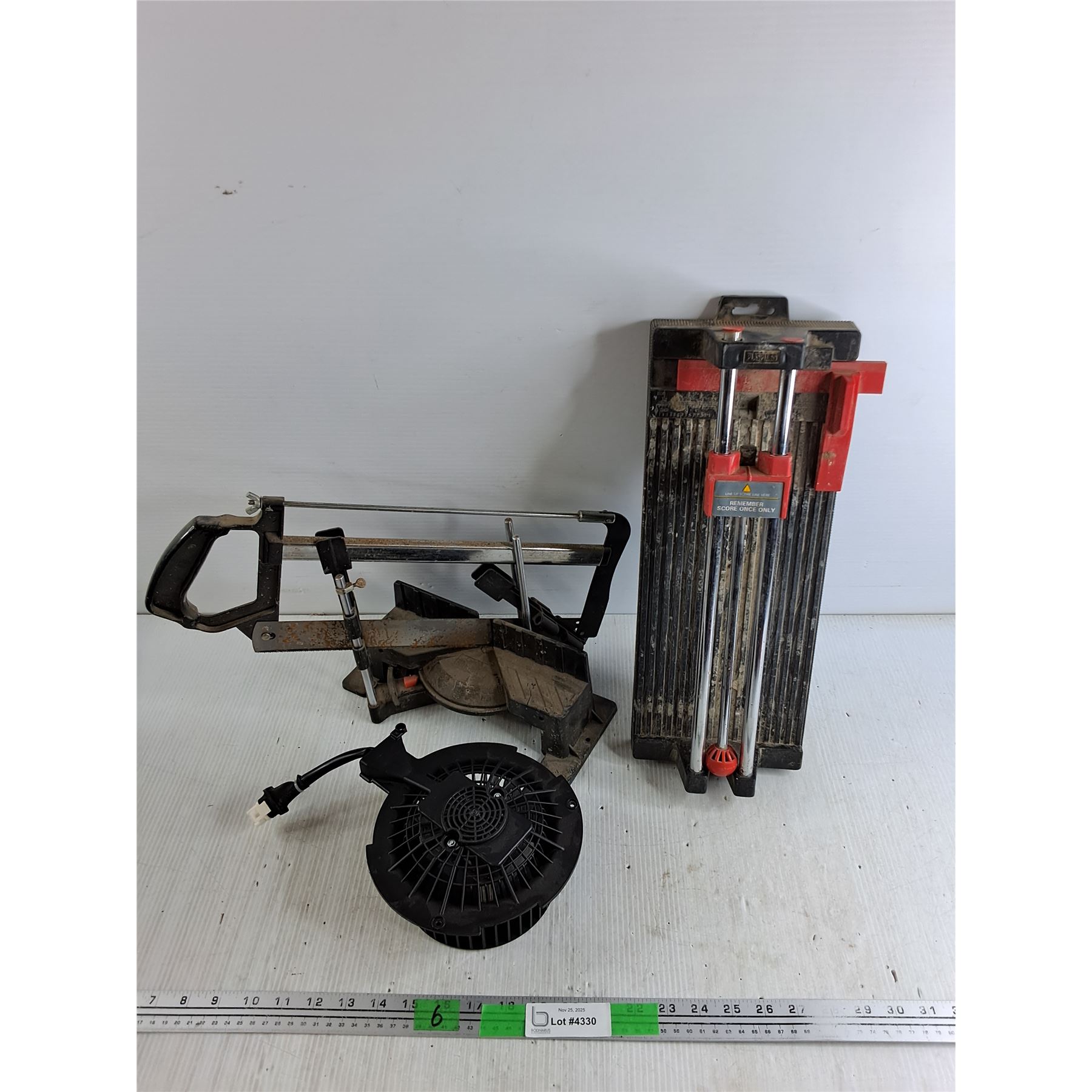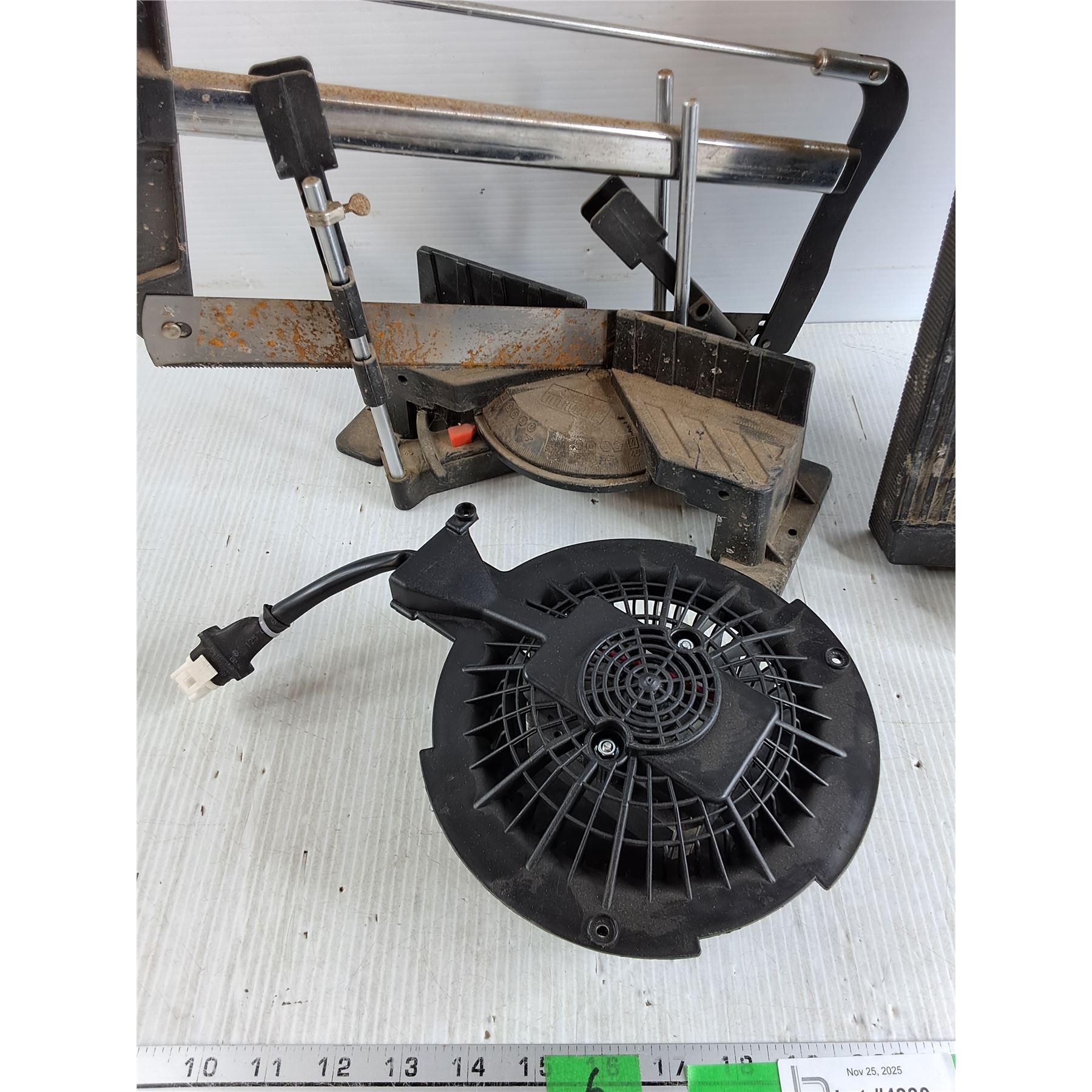 Plasplugs Tile Cutter, Jobmate Miter Box, Blower Motor - As Is