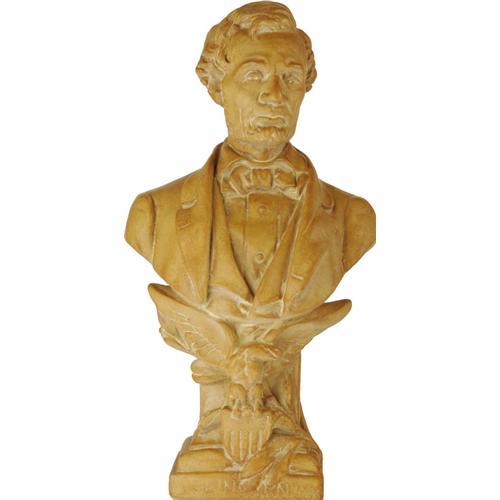 <B>Plaster Bust of Lincoln with Eagle & Crest.</B></I> This turn of the century finished plaster sculpture is tan with lighter tan accenting throughout. "LINCOLN" on the front of the base is purposefully and artfully obstructed by the olive branch leaves carved in at the base. The bust measures approximately 4.75" wide x 4.25" deep x 16" tall. The bronze-like luster makes this bust an attractive addition to any Lincoln collection.<BR><BR><b>Shipping:</b> Miscellaneous Collectibles, Larg (<a target="_blank" href="http://www.heritageauctions.com/common/shipping.php">view shipping information</a>)