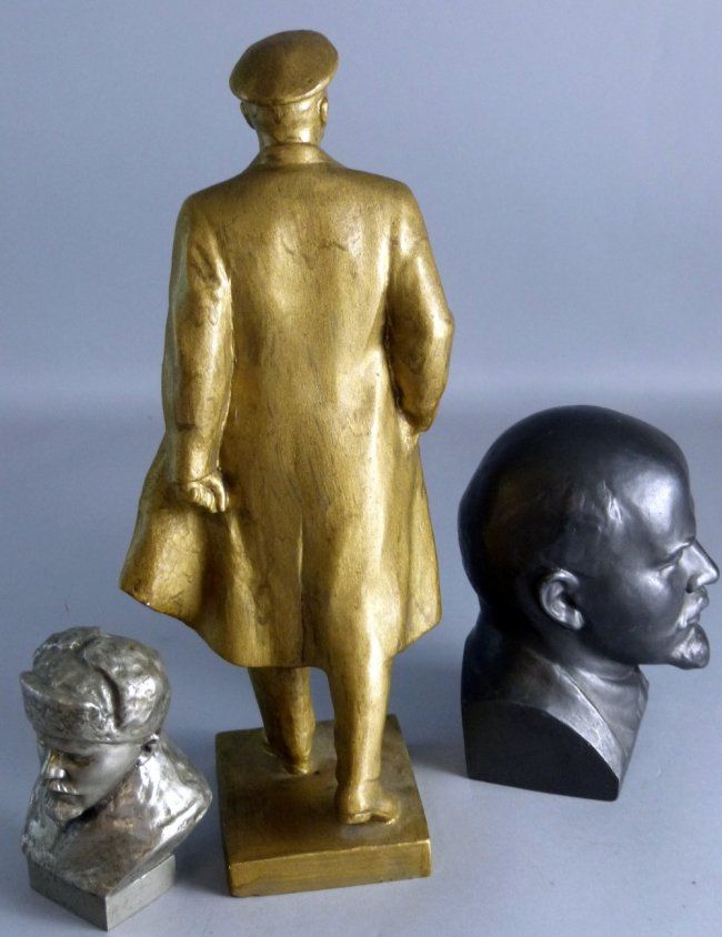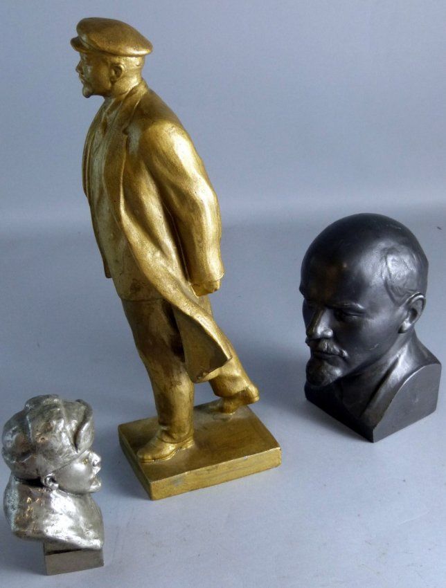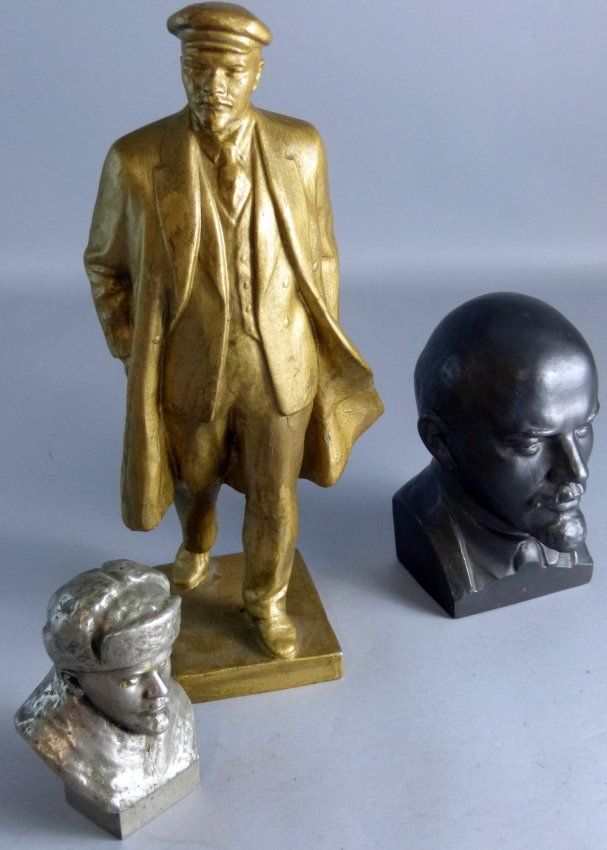 Plaster figure of Vladimir Ilyich Lenin and two similar busts