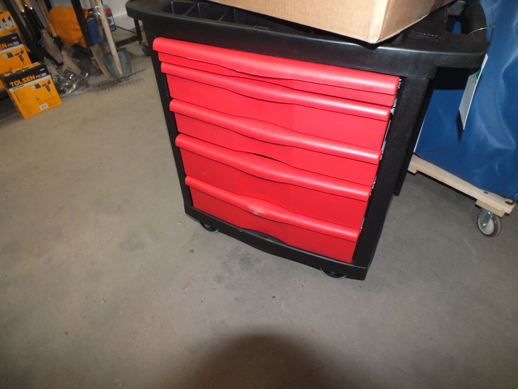 Plastic 5 Drawer Tool Chest On Wheels in good condition...used