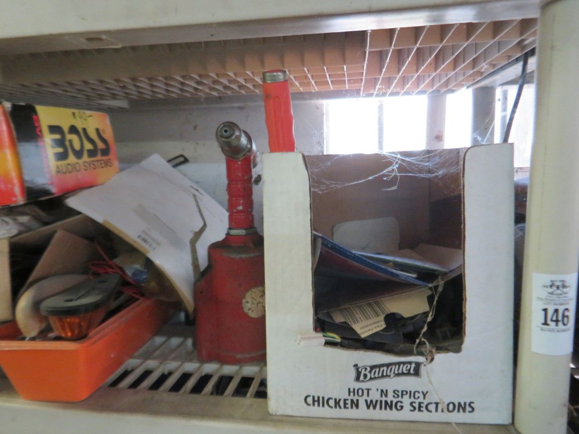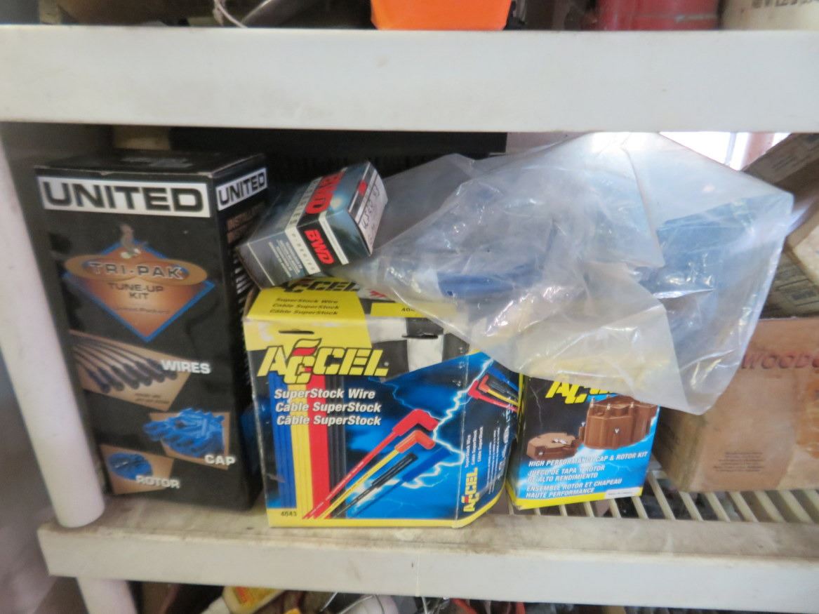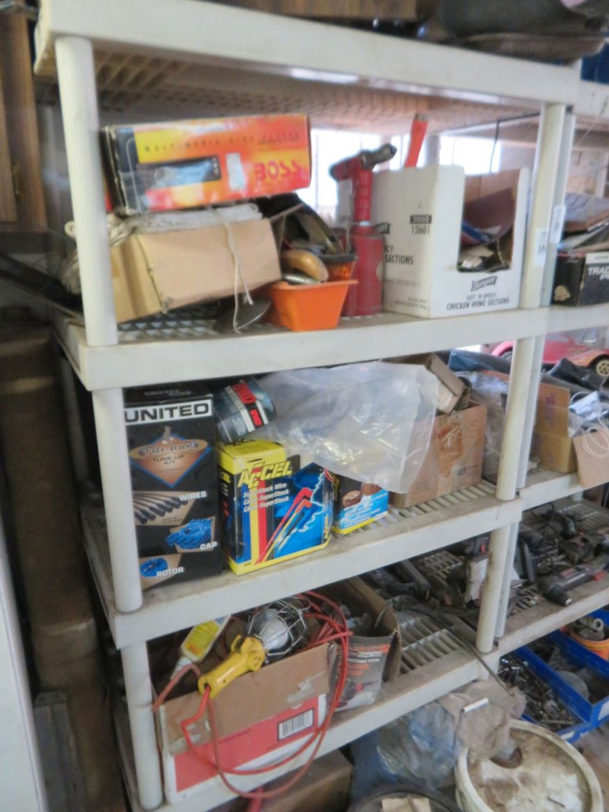 Plastic 5 Shelf Storage Rack w/Parts & Contents
