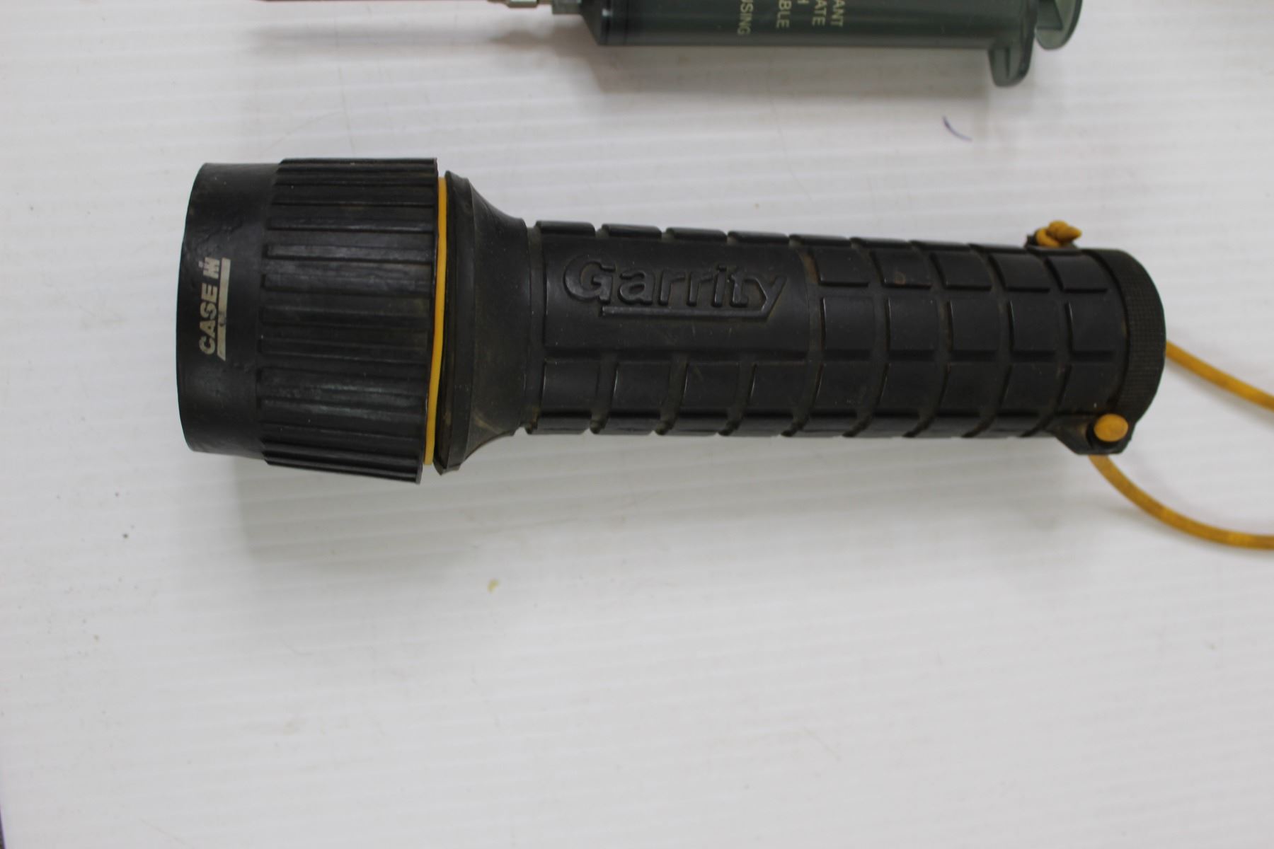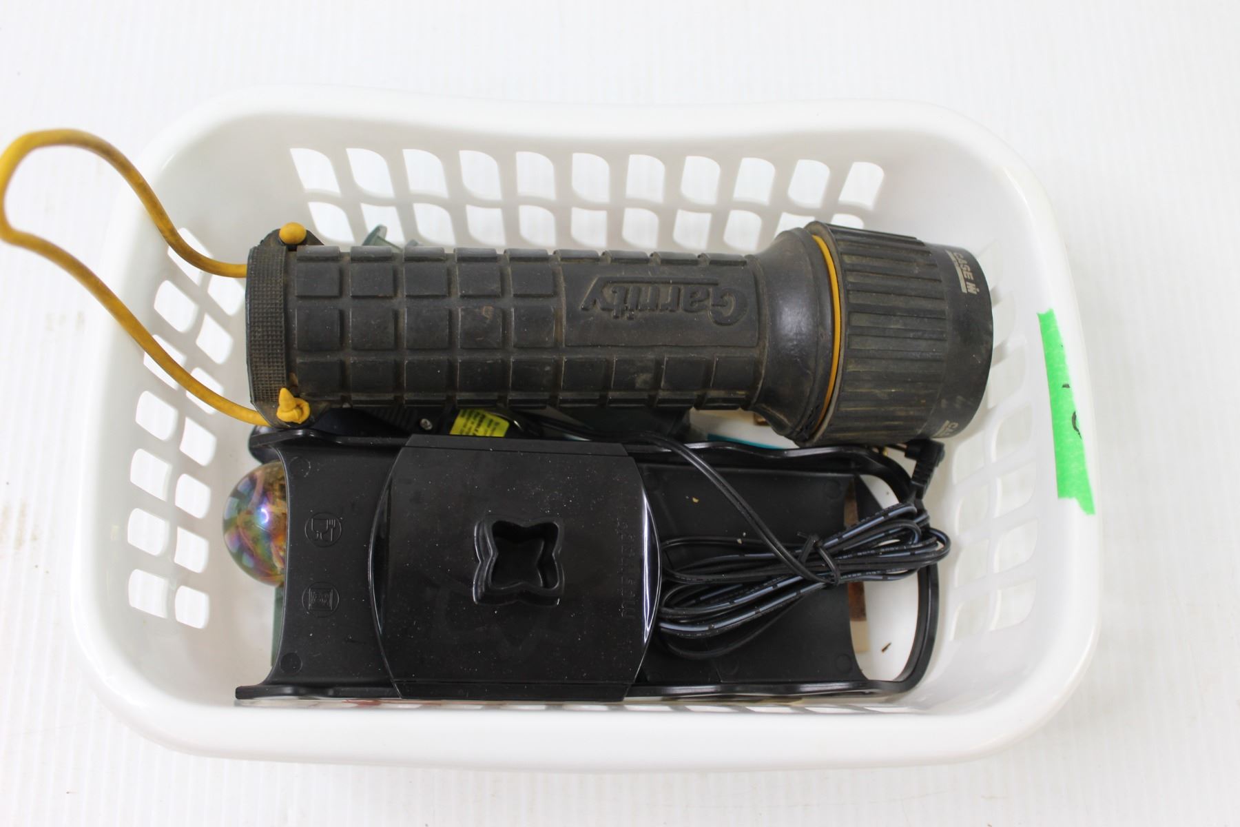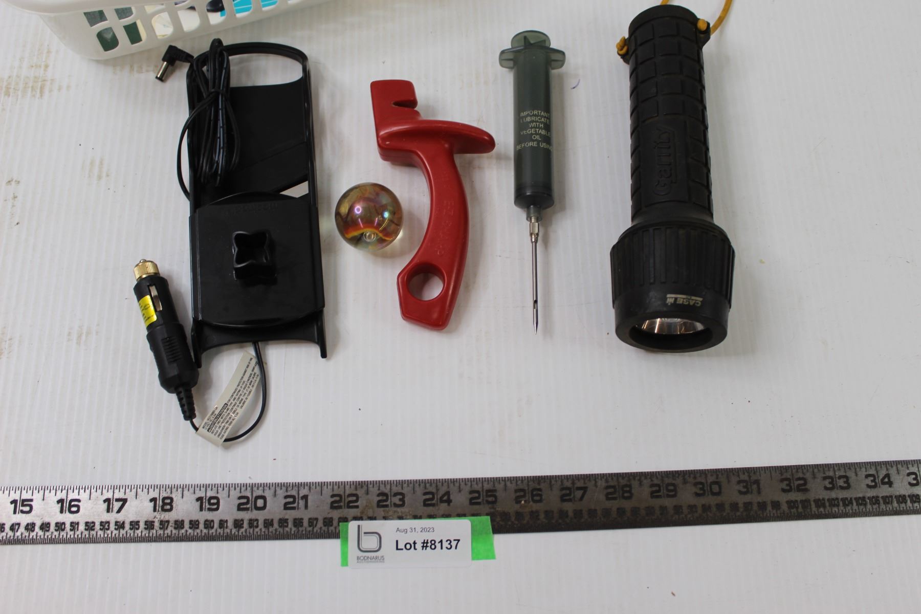 Plastic Basket w/ Knife, Sharpeners, Slicer, and Flashlight