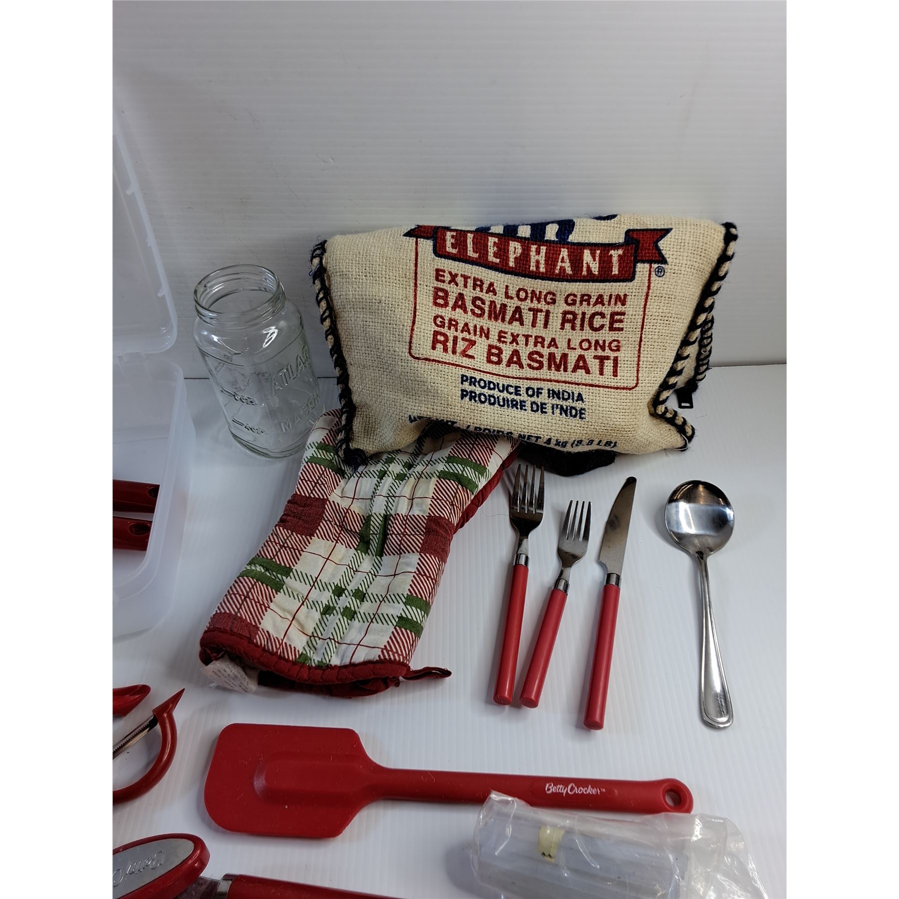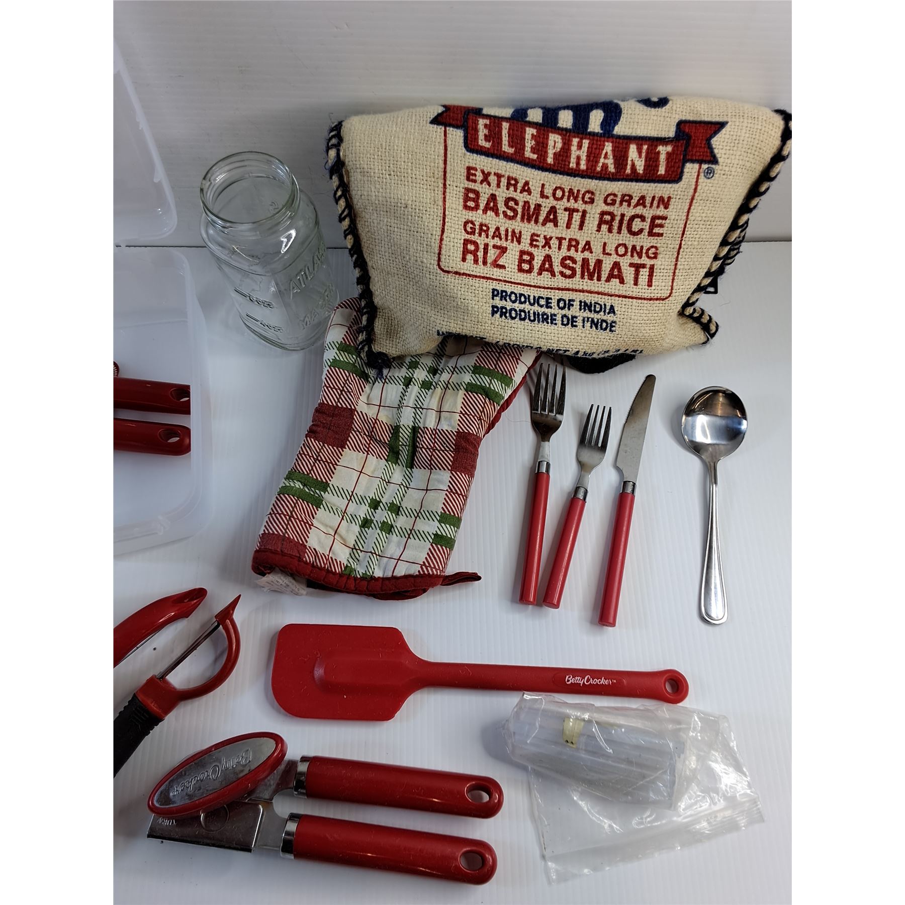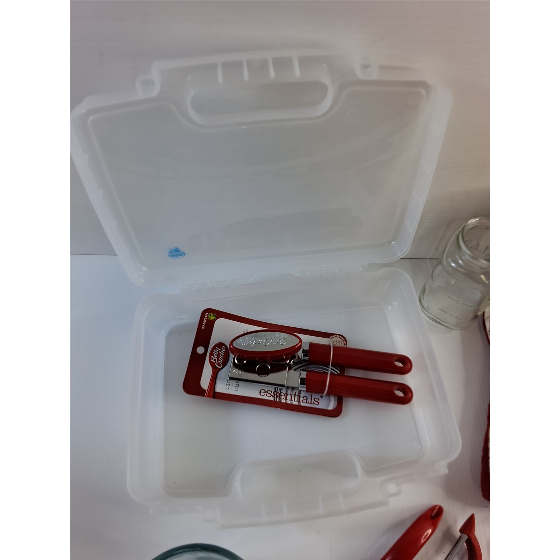 Plastic Case, Pitcher, Can Opener, Cutlery, Potato Peeler and Misc
