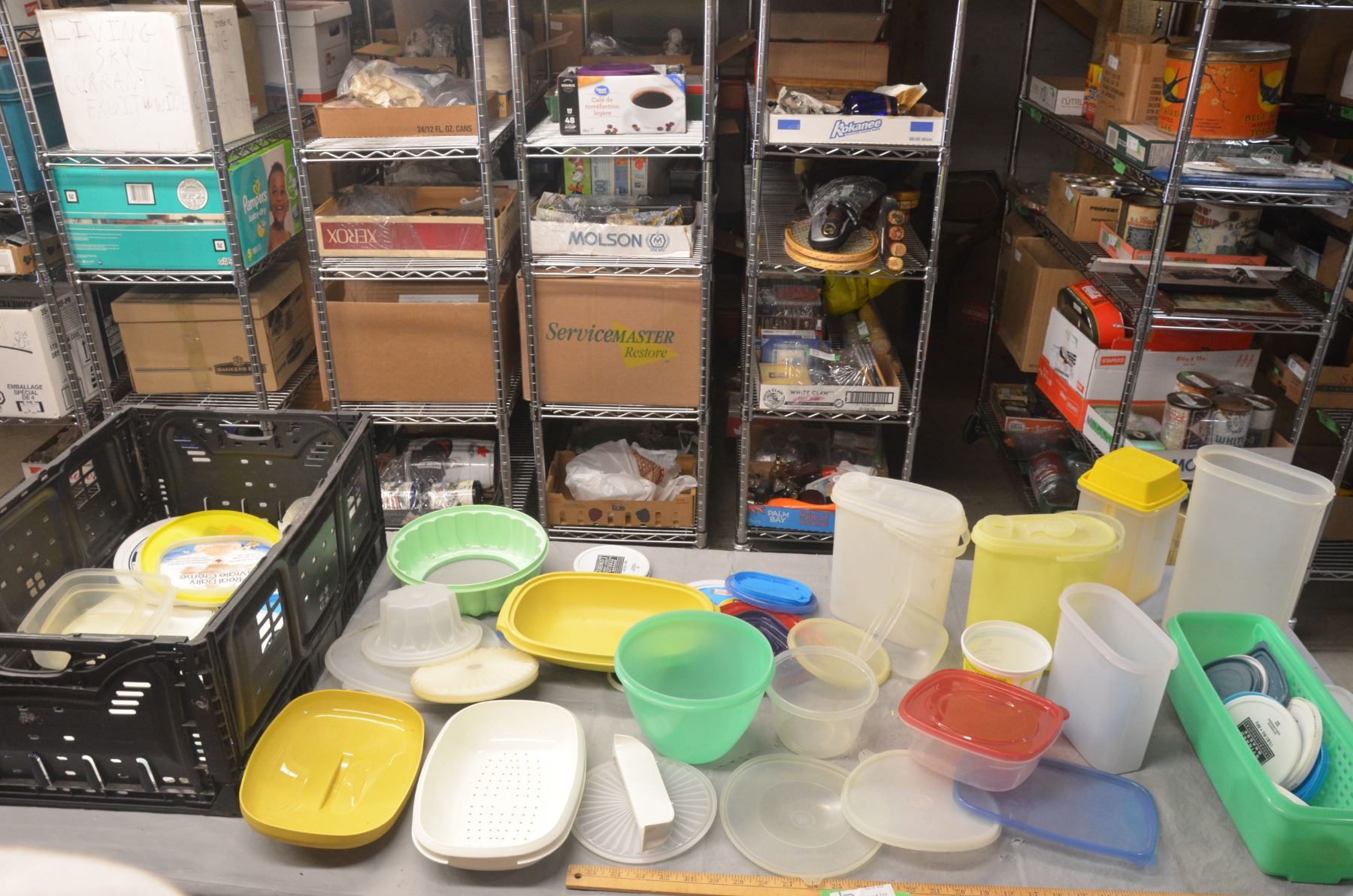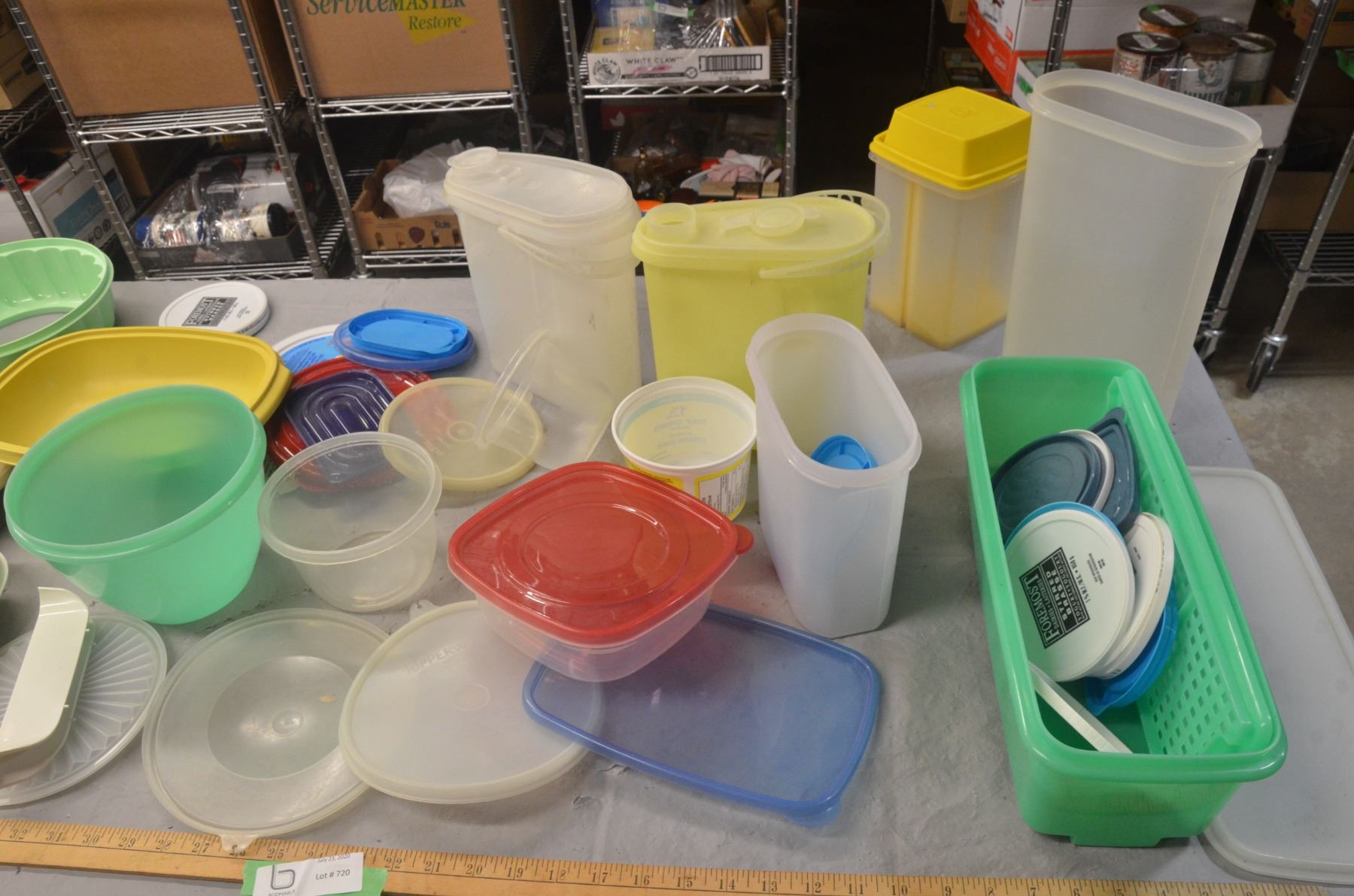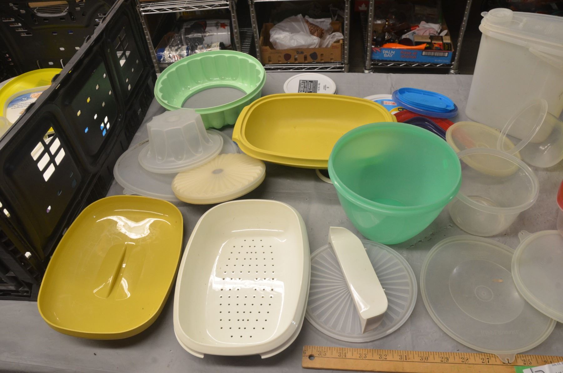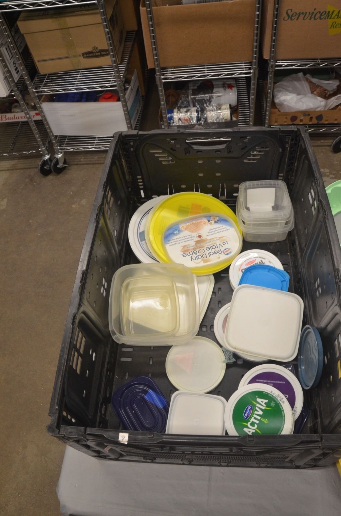 Plastic Collapsible Crate w/ Misc. Tupperware and Containers