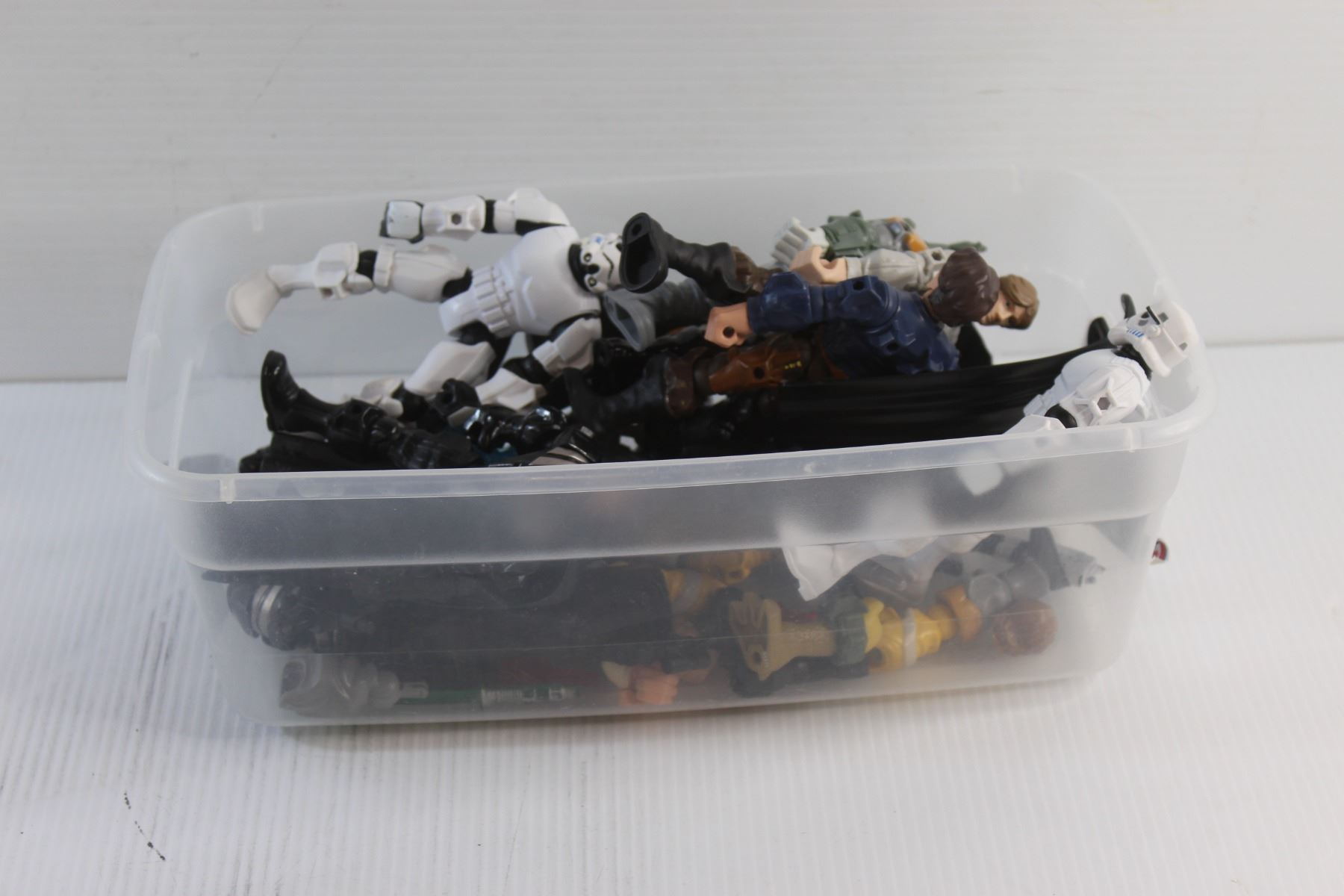 Plastic Container and Assorted Star Wars Toys and Figurines