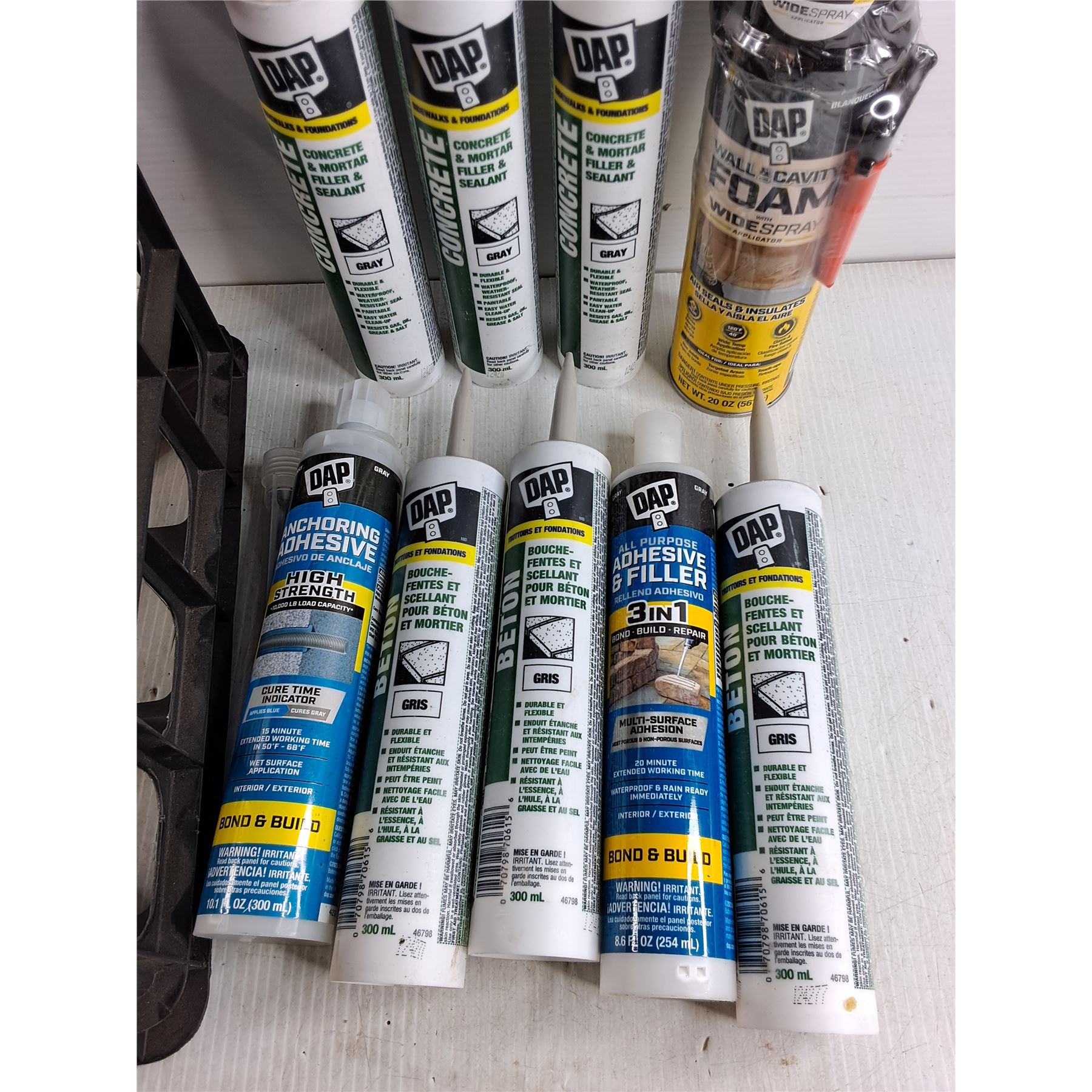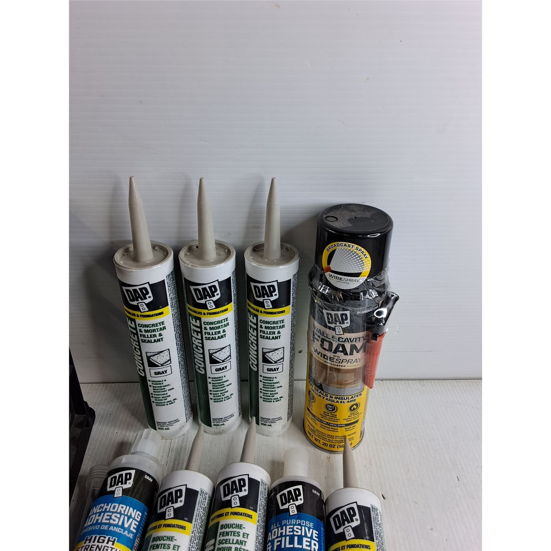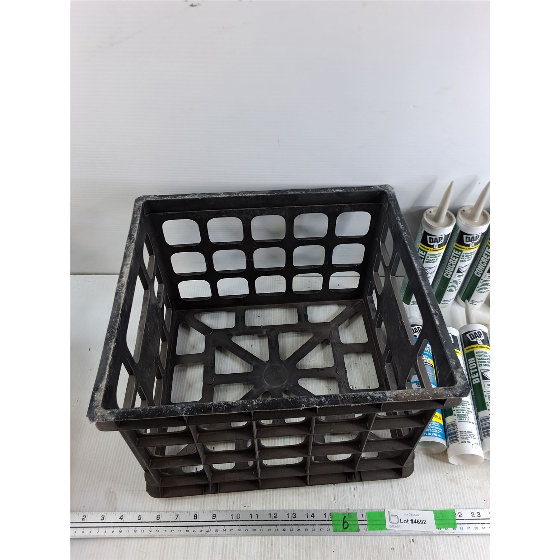 Plastic Crate 15" x 14" x 10", DAP Concrete Sealant, Adhesive & Filler, No Ship