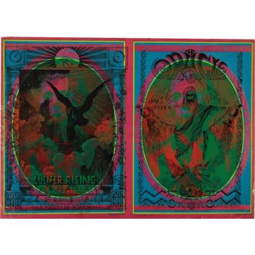 <B>Plastic Explosion Uncut Double Overprint Poster NR-13B (Neon Rose, 1967).</B></I> Two Neon Rose posters were overprinted with unrelated images for Kenneth Anger's "Lucifer Rising" film and the cover page to an issue of the hippie newspaper, the Oracle, to produce this unusual item, which had only one printing. The artists involved were Victor Moscoso and Rick Griffin. This copy is in Good condition, with considerable wear along the edges, and some staining. Very trippy!<BR><BR><b>Shipping:</b> Flat Material, Large (<a target="_blank" href="http://www.heritageauctions.com/common/shipping.php">view shipping information</a>)