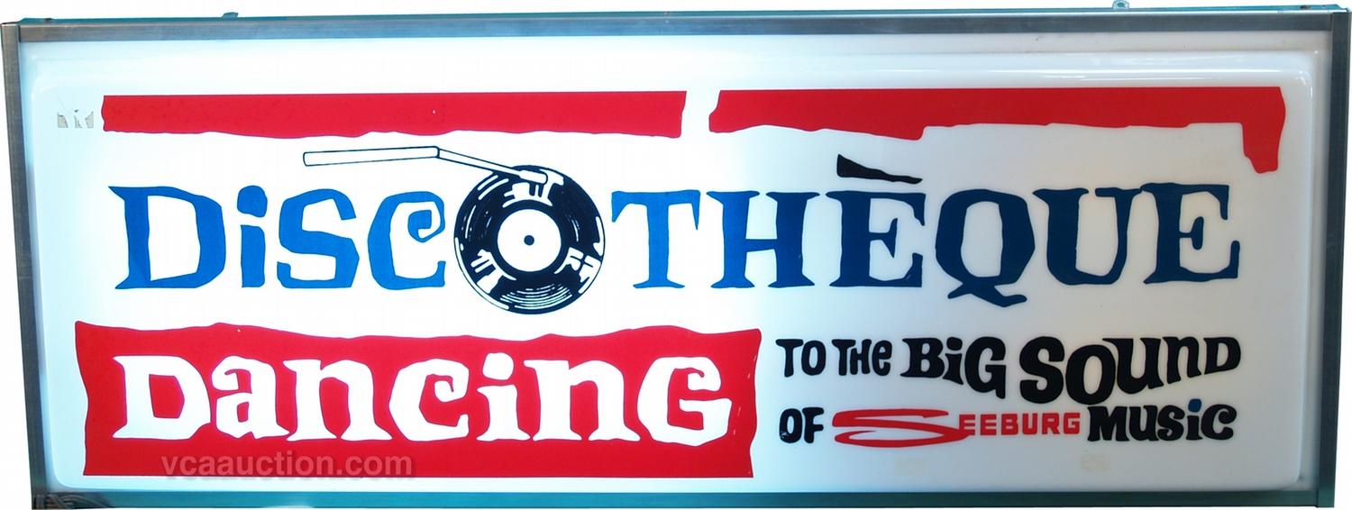 Plastic Light-Up Box "Seeburg Disco Theque Dancing" Sign, N.O.S. - 38" x 15"