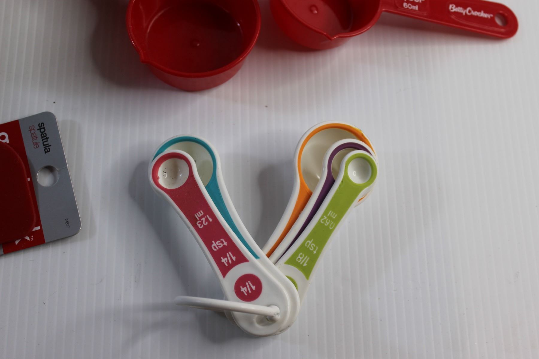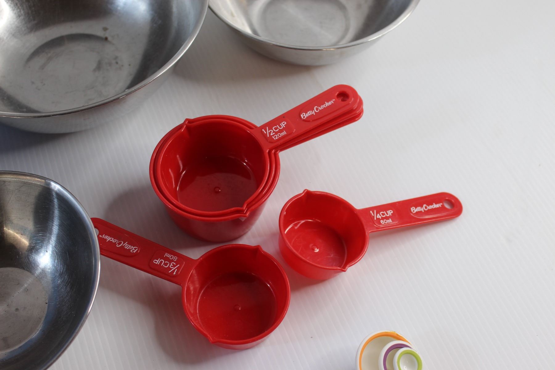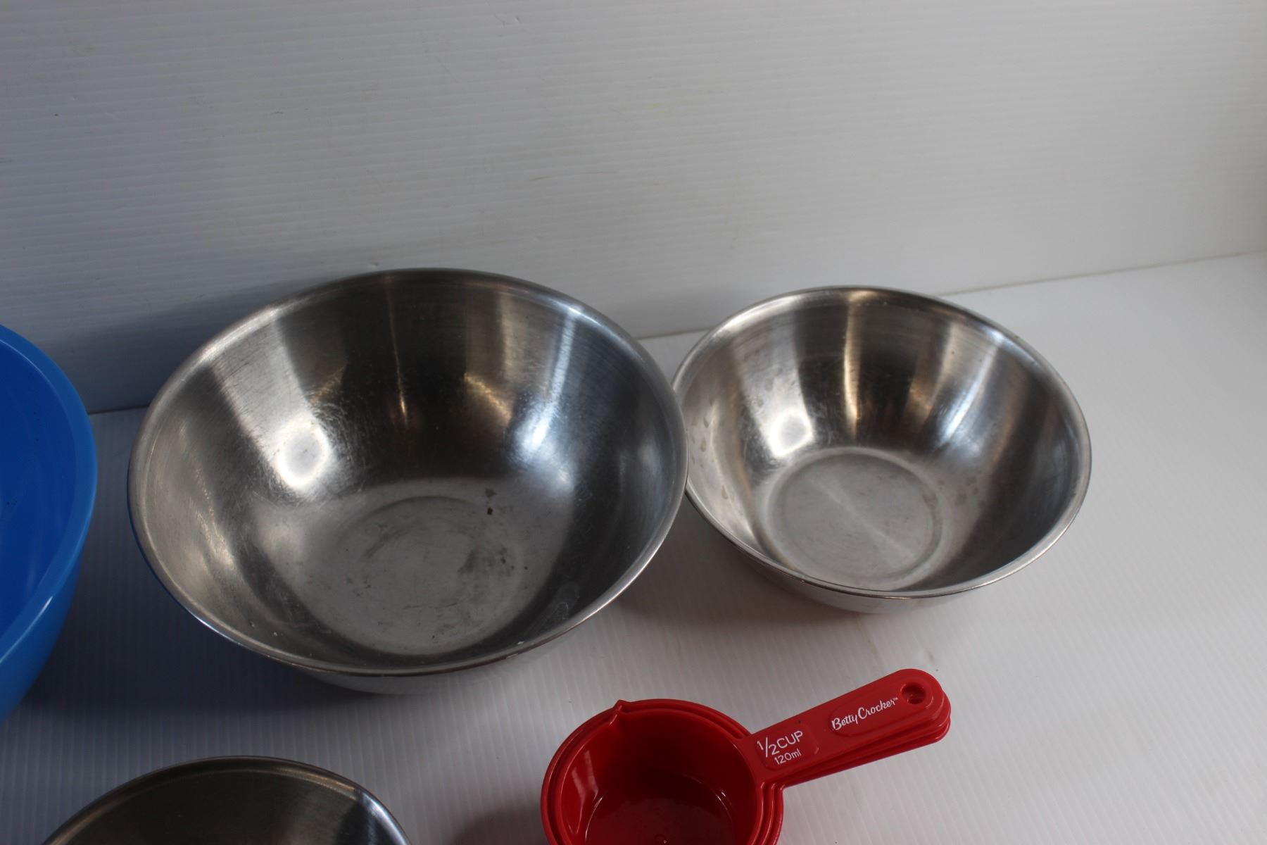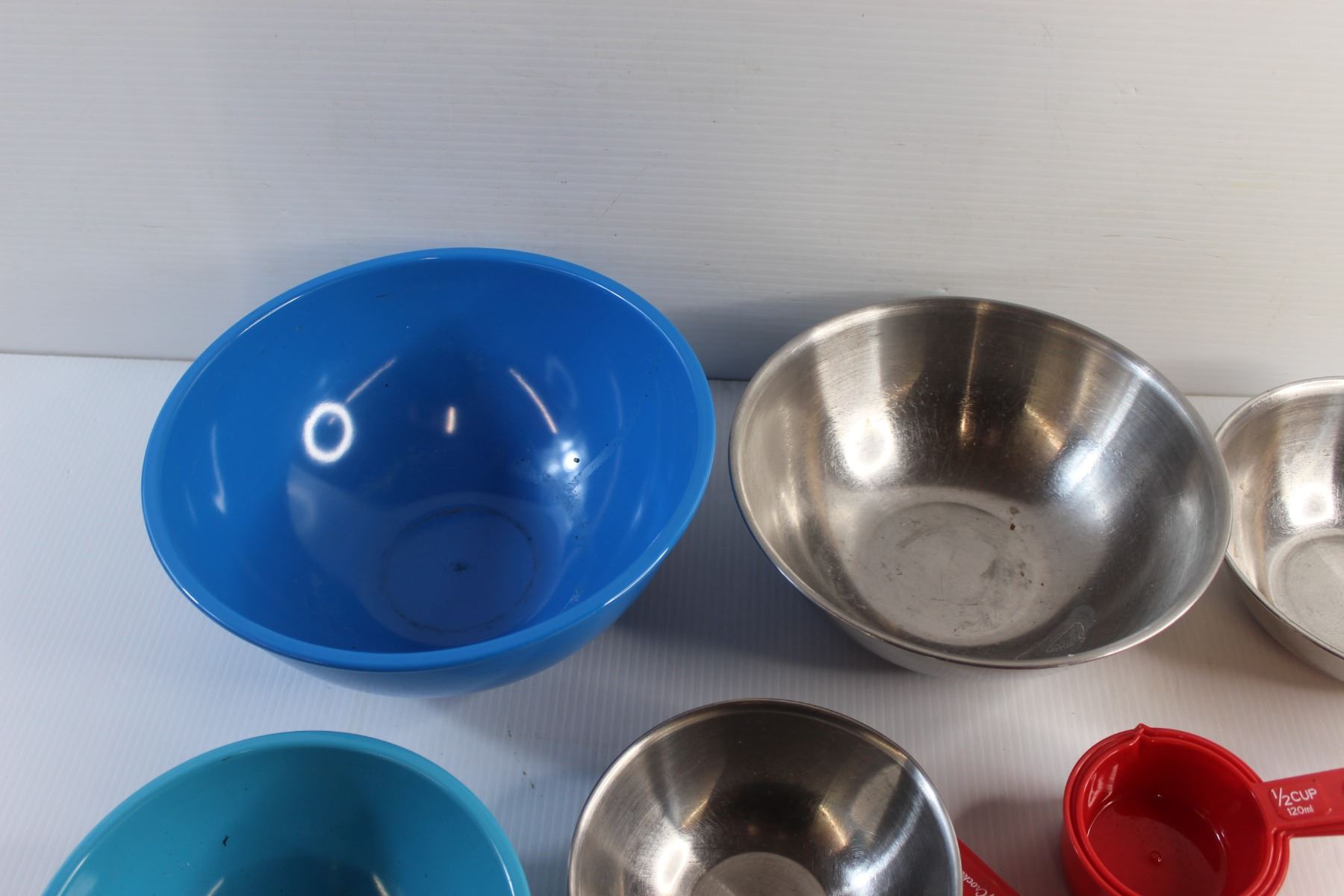 Plastic & Metal Bowls, Measuring Cups and Spatula