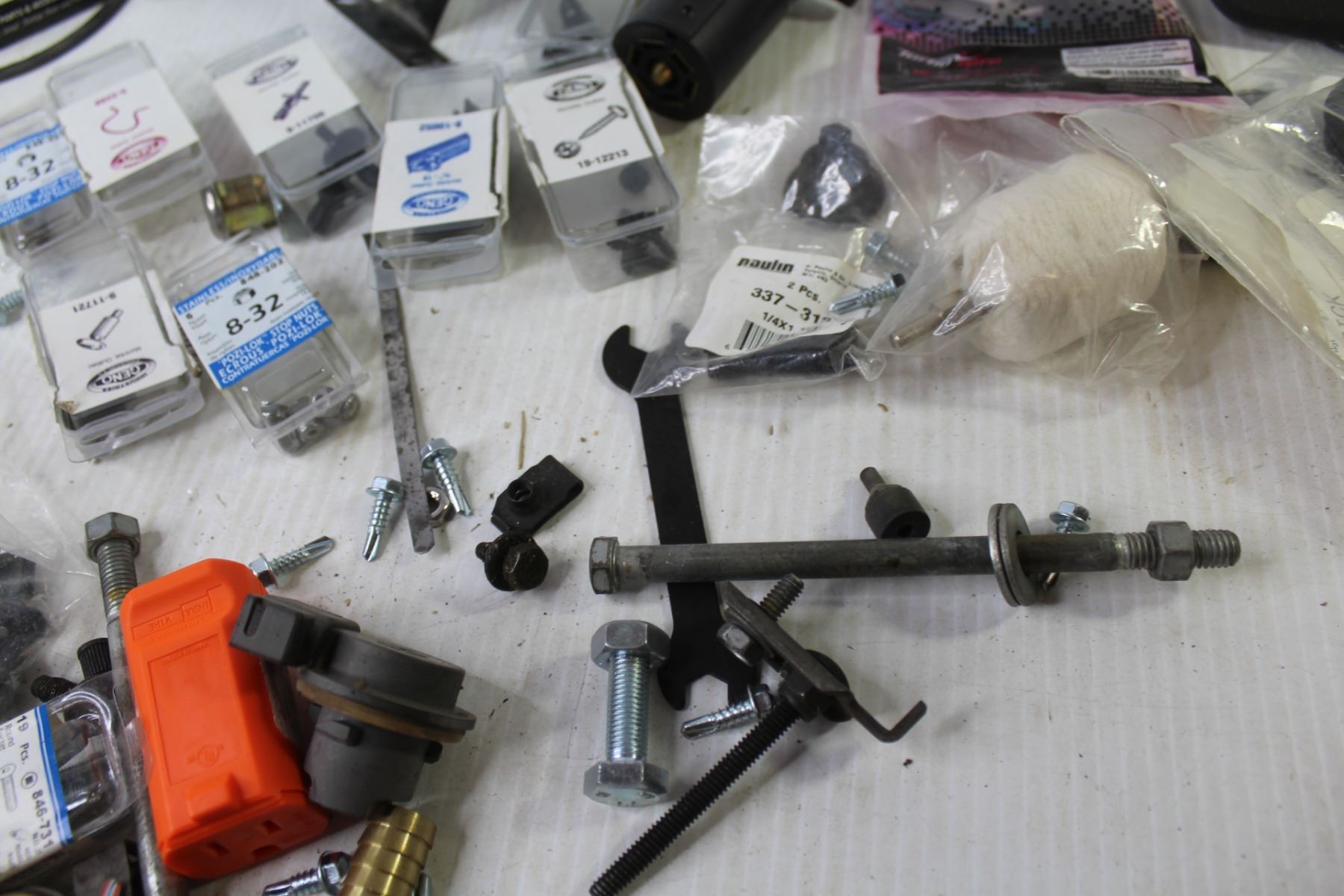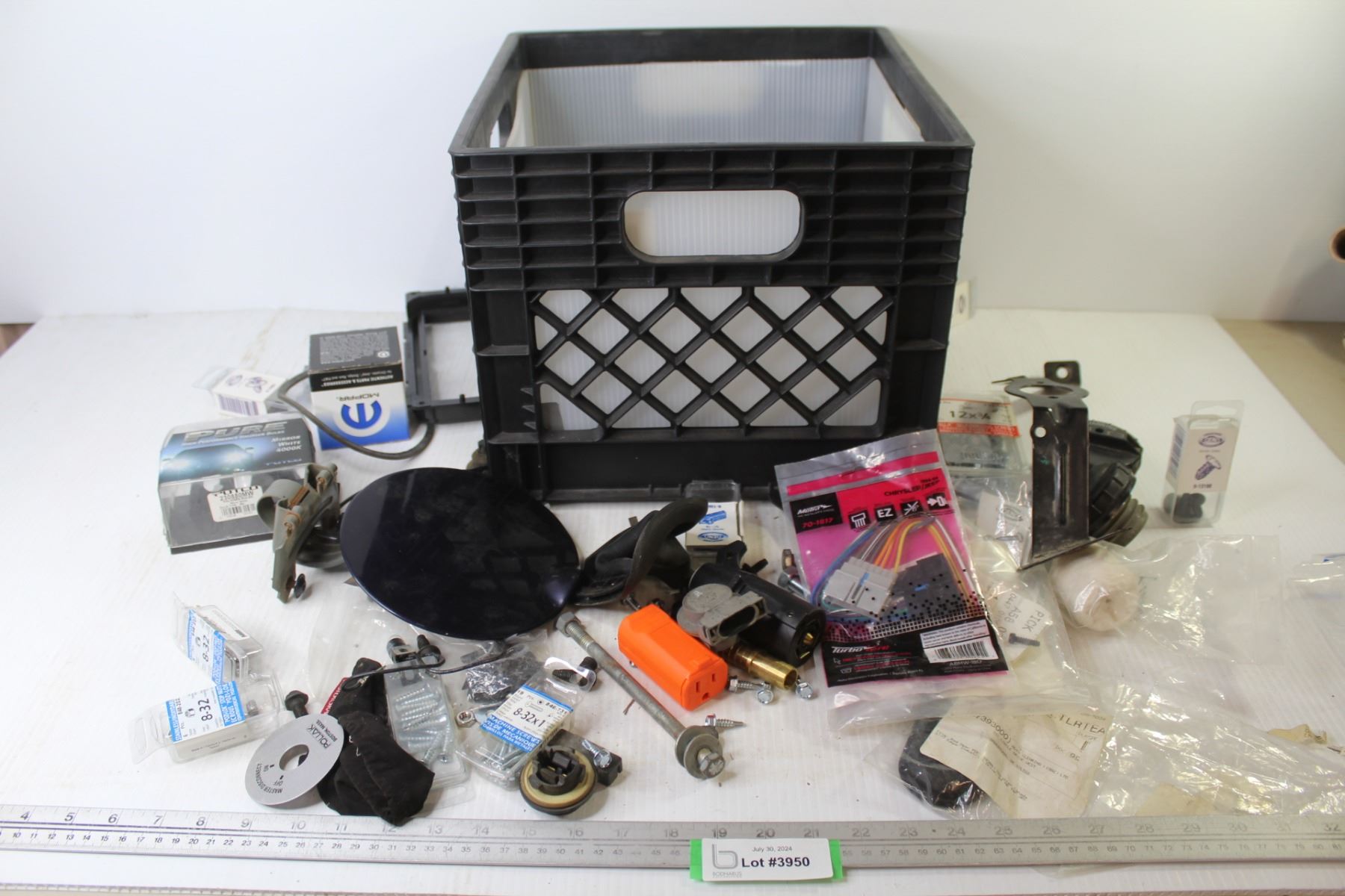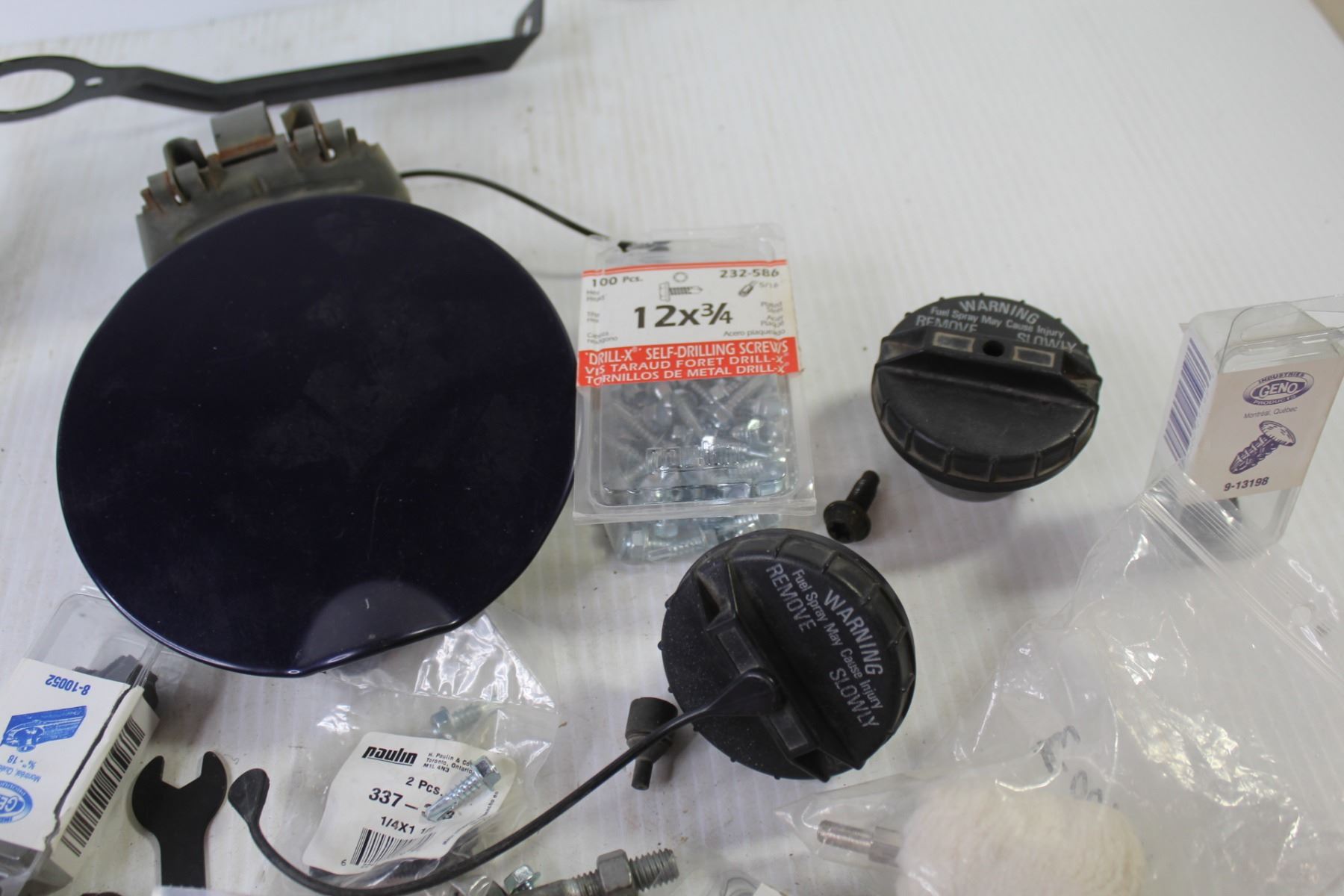 Plastic Milk Crate - Self Taping Screws - Gas Caps - Large Assortment of Small Automotive Parts