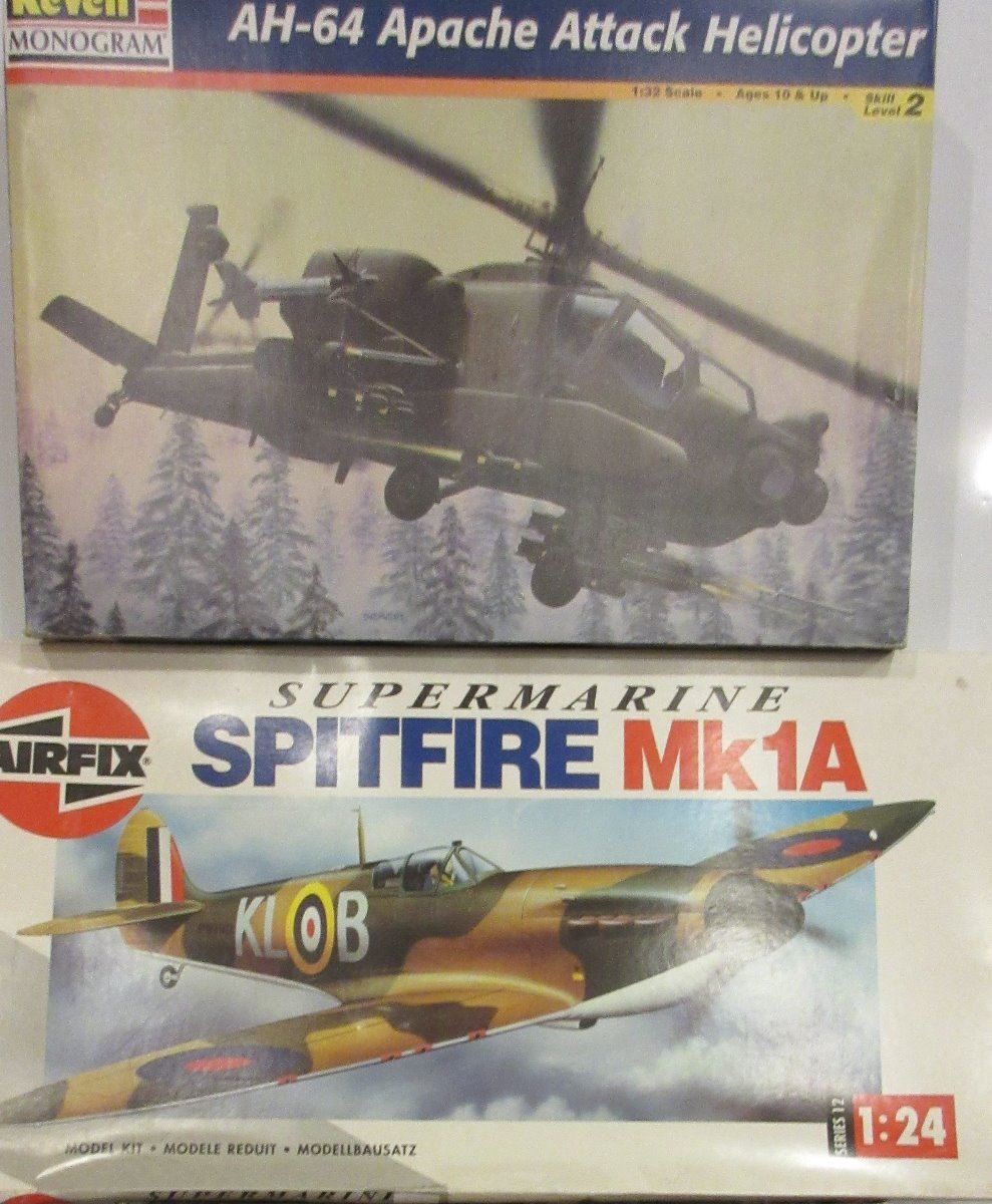 AH-64 Apache Attack Helicopter 1:32 scale revealed 1987, Supermarine Spitfire MK1A Series 12 1:24 (Airfix 5)