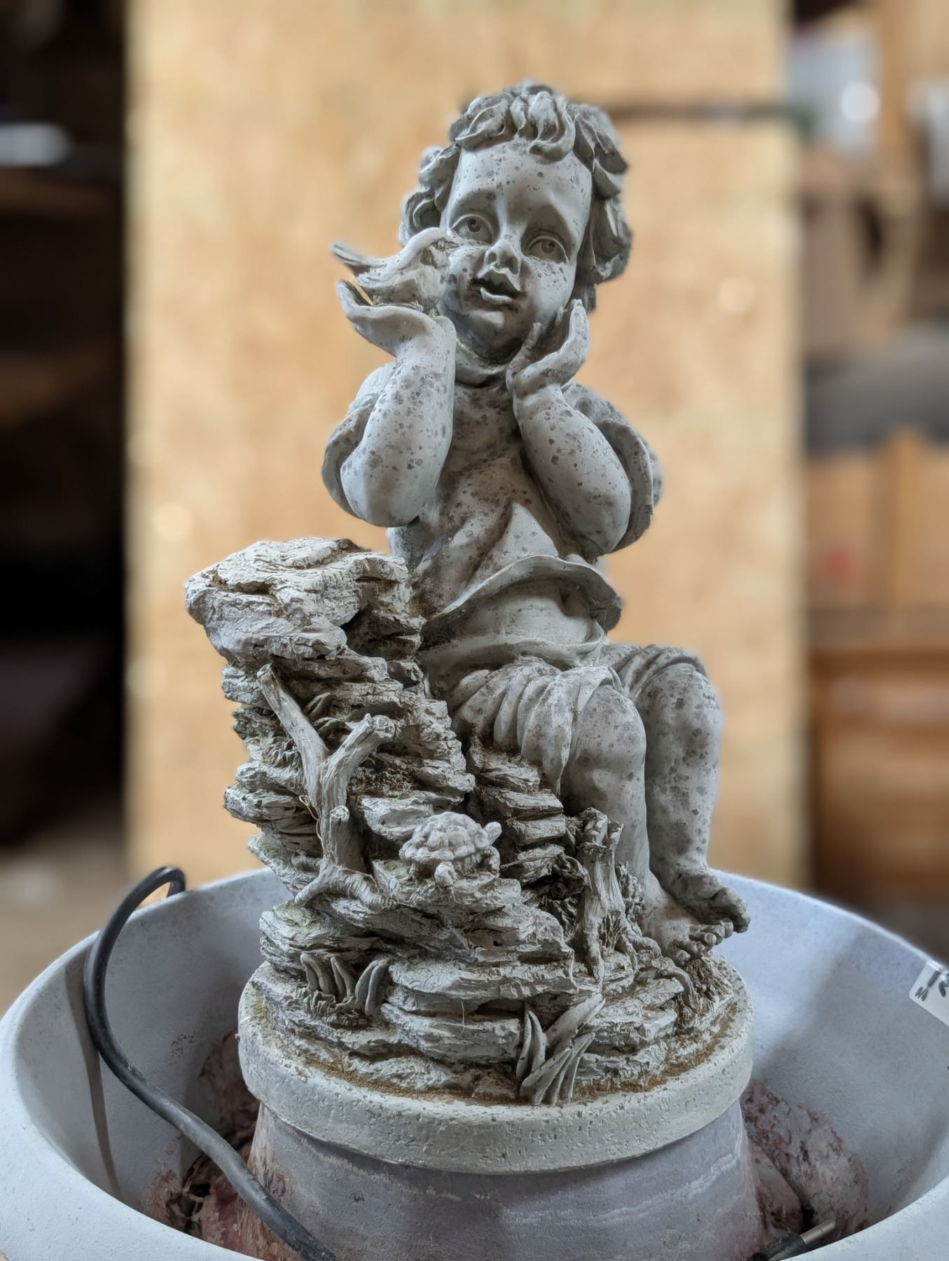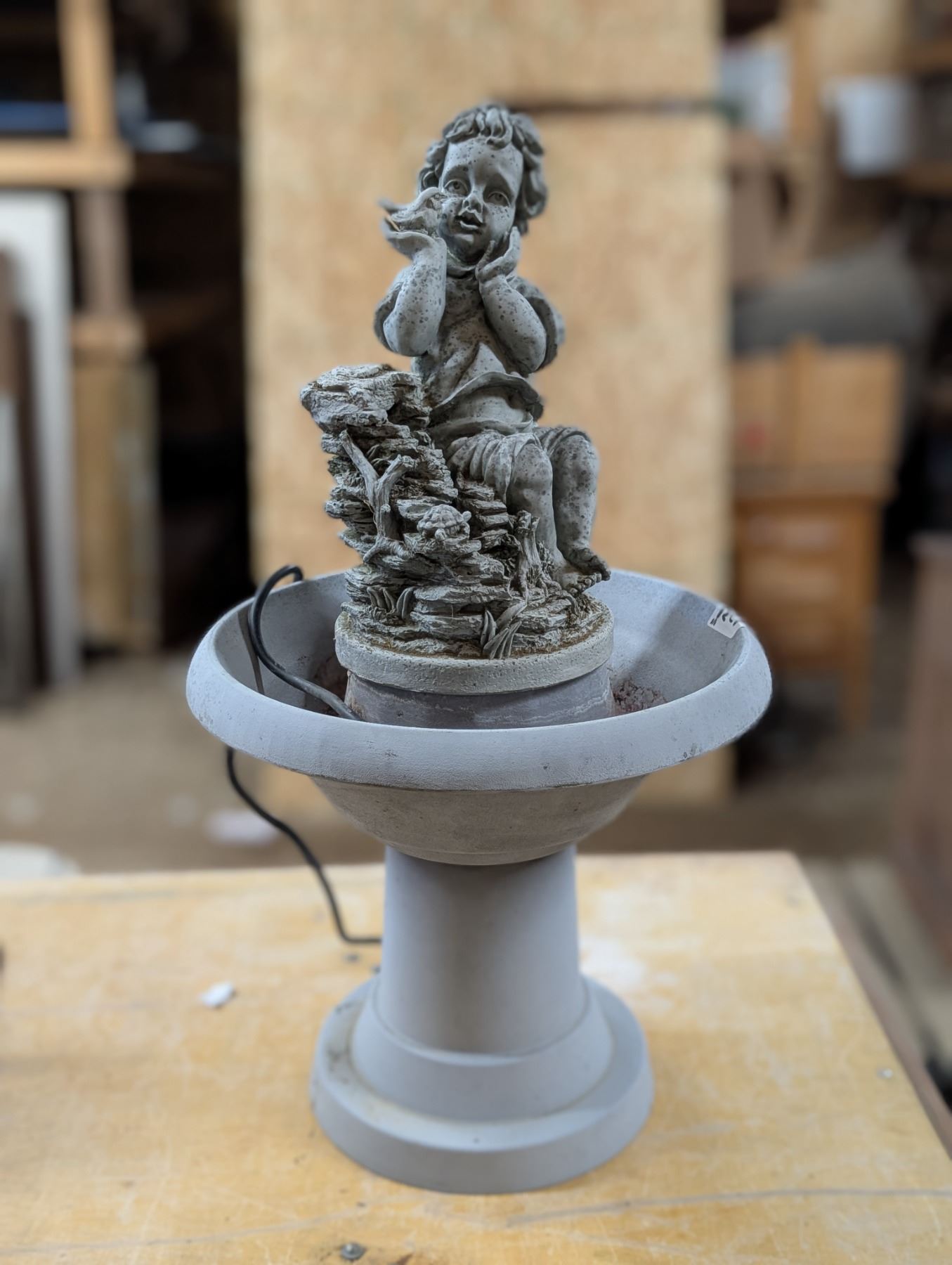 Plastic Plug in Water Fountain w/ Child Statue (not Tested)