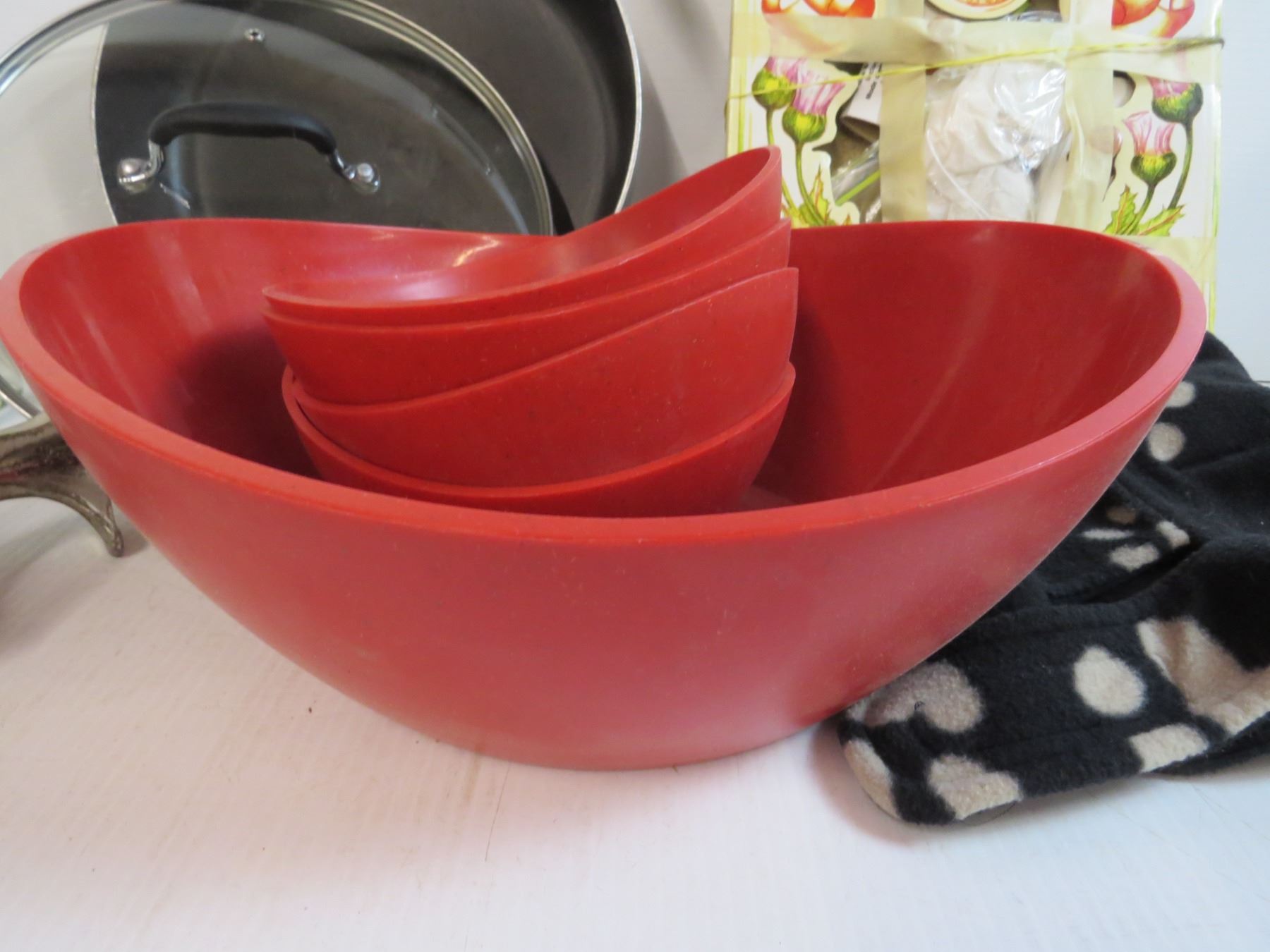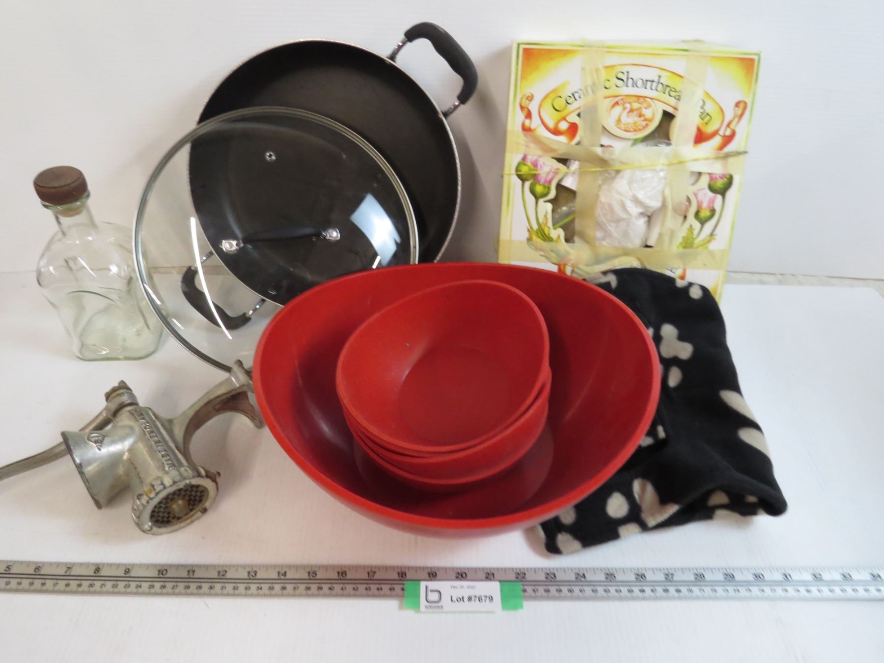 Plastic Salad Bowl Set - Dog Jacket (small) - Ceramic Shortbread Pan - Frying Pan - Grinder