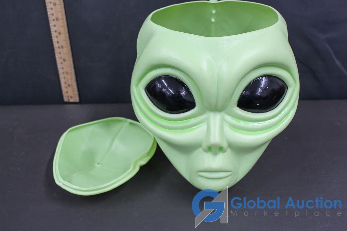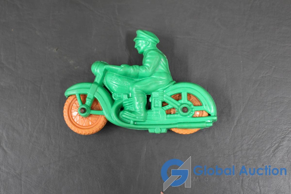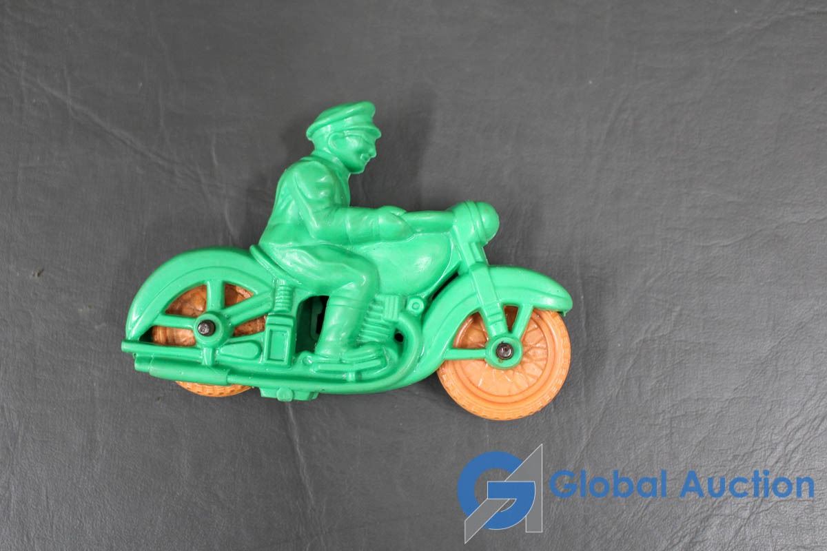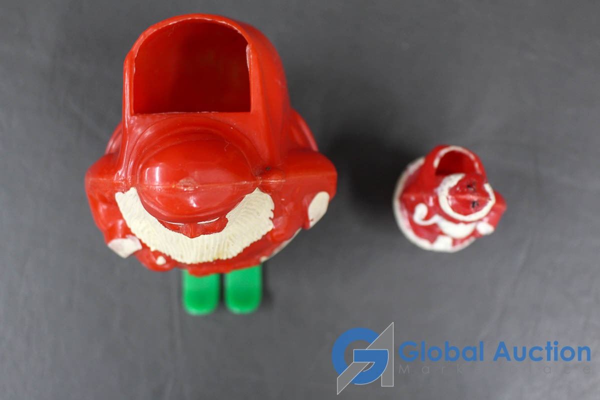 Plastic Santa Clause (2), Green Plastic Motorcycle Toy and Alien Pops Head