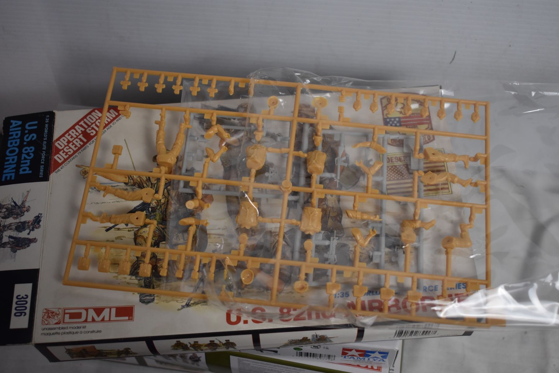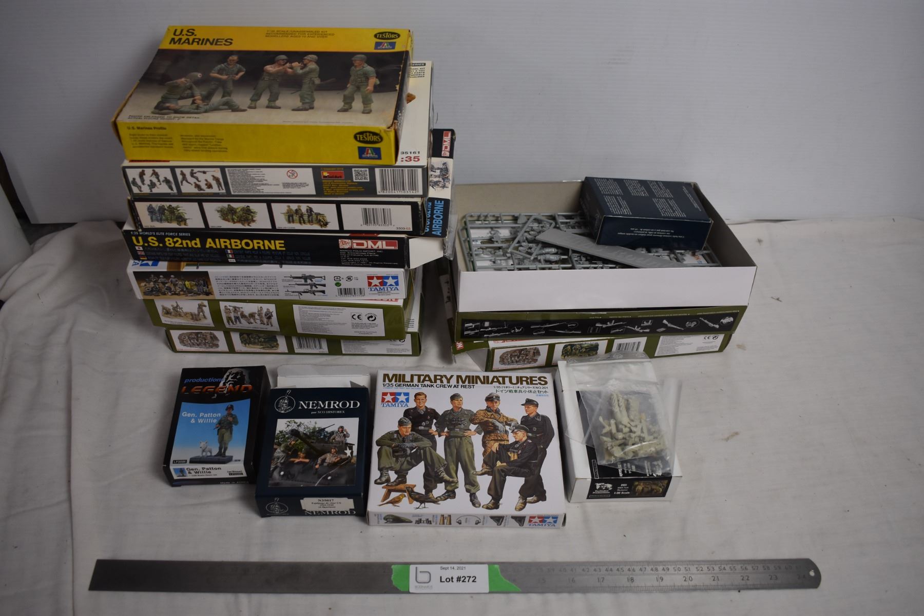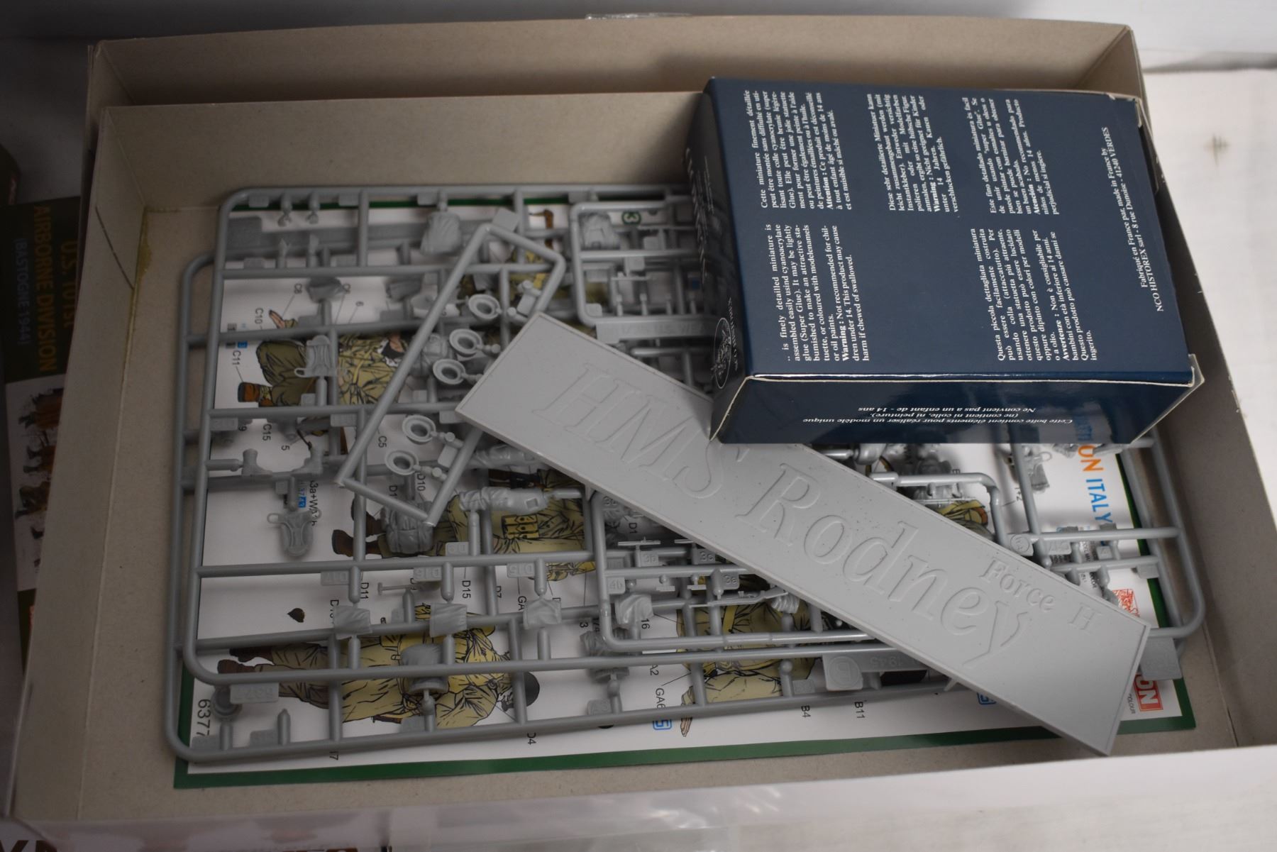 Plastic Soldier army figures (boxes empty or partially used, mainly just body parts on the trees)