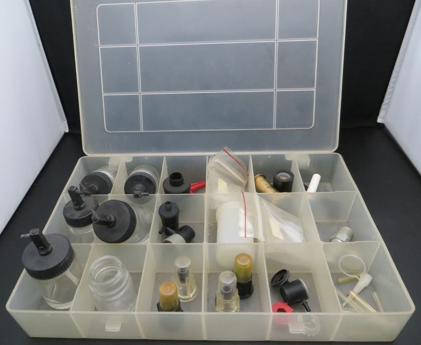 Plastic Sorting Tray With Glass Air Brush Bottles With Various Tips, Magnifiers & Other Parts