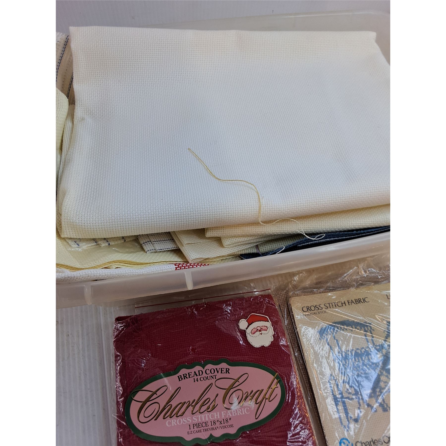 Plastic Storage Bin Full of Cross Stitch Materials/Projects