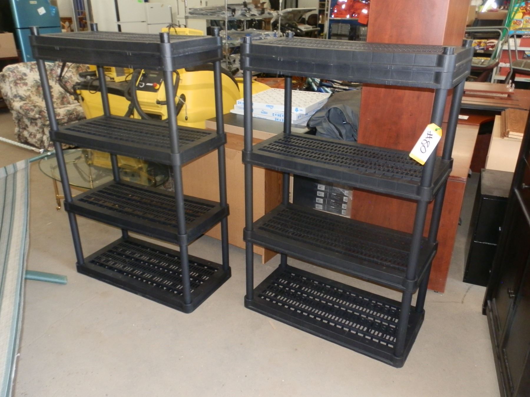 you get 2 Plastic Storage Shelves for one money, in good condition....35"L 17"W 56"H....used