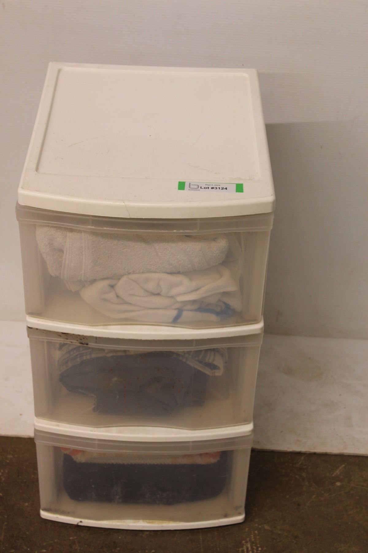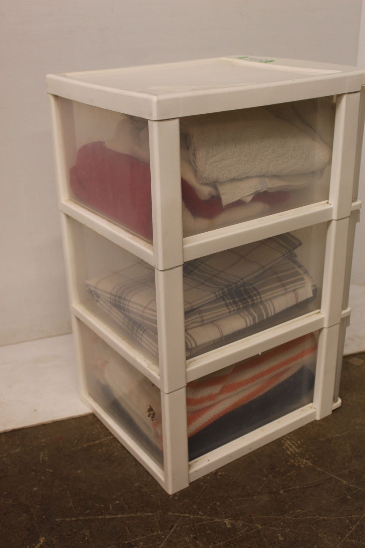 * Plastic Three Drawer Storage Unit w/Contents - 13" x 16" x 25"