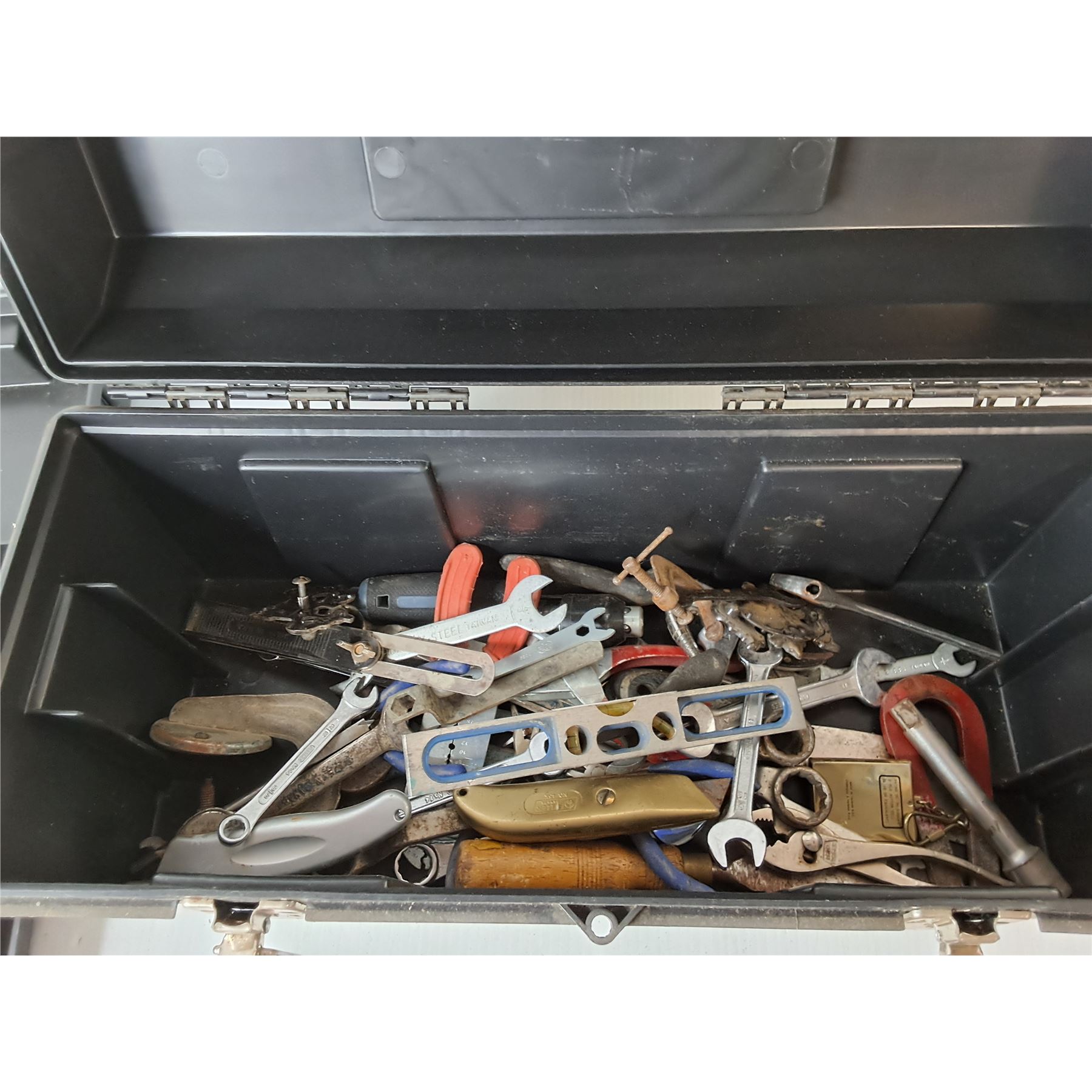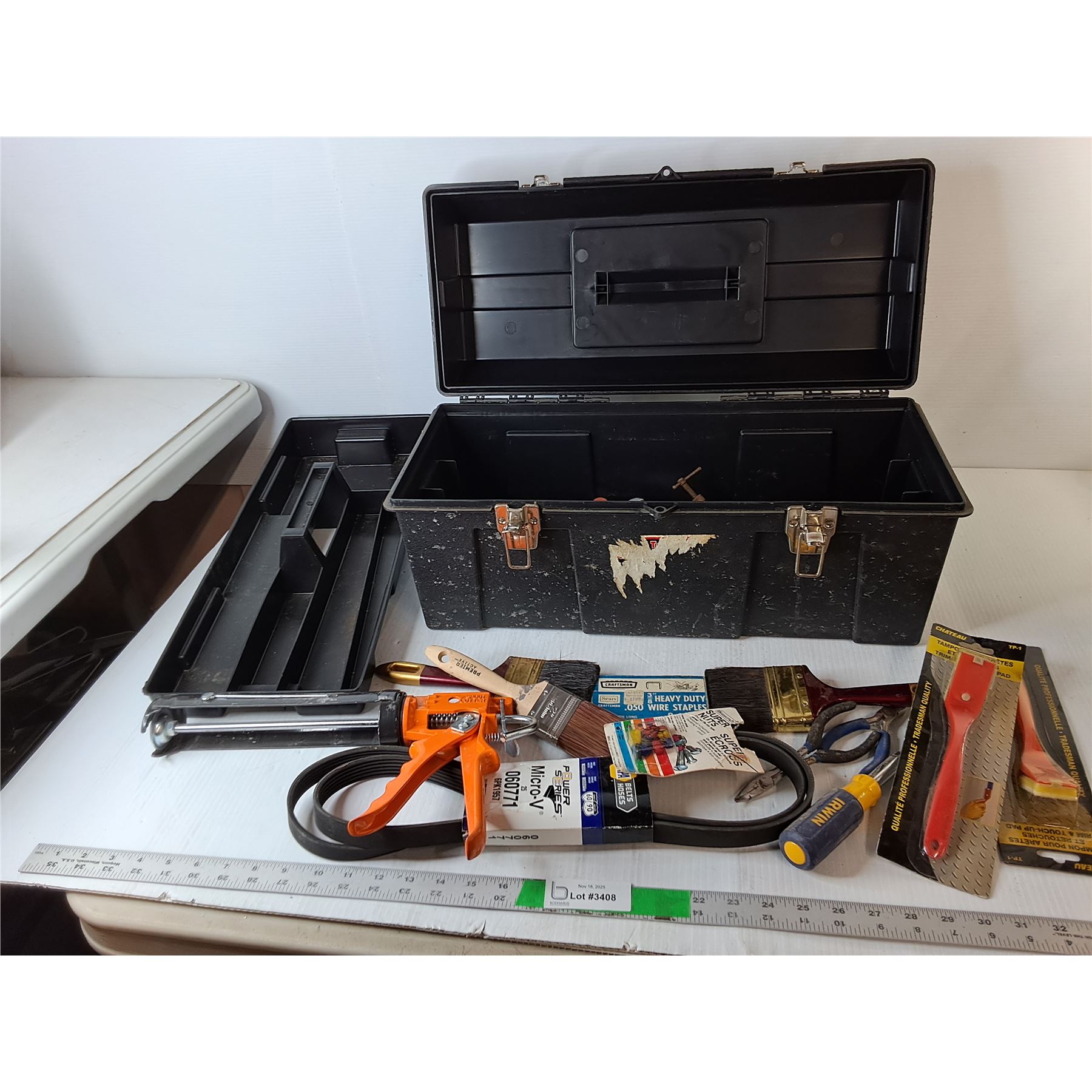 Plastic Tool Box 22" x 9.25" x 10.75" & Tools- Paintbrushes, Wrenches, Level, Misc. Cannot Ship