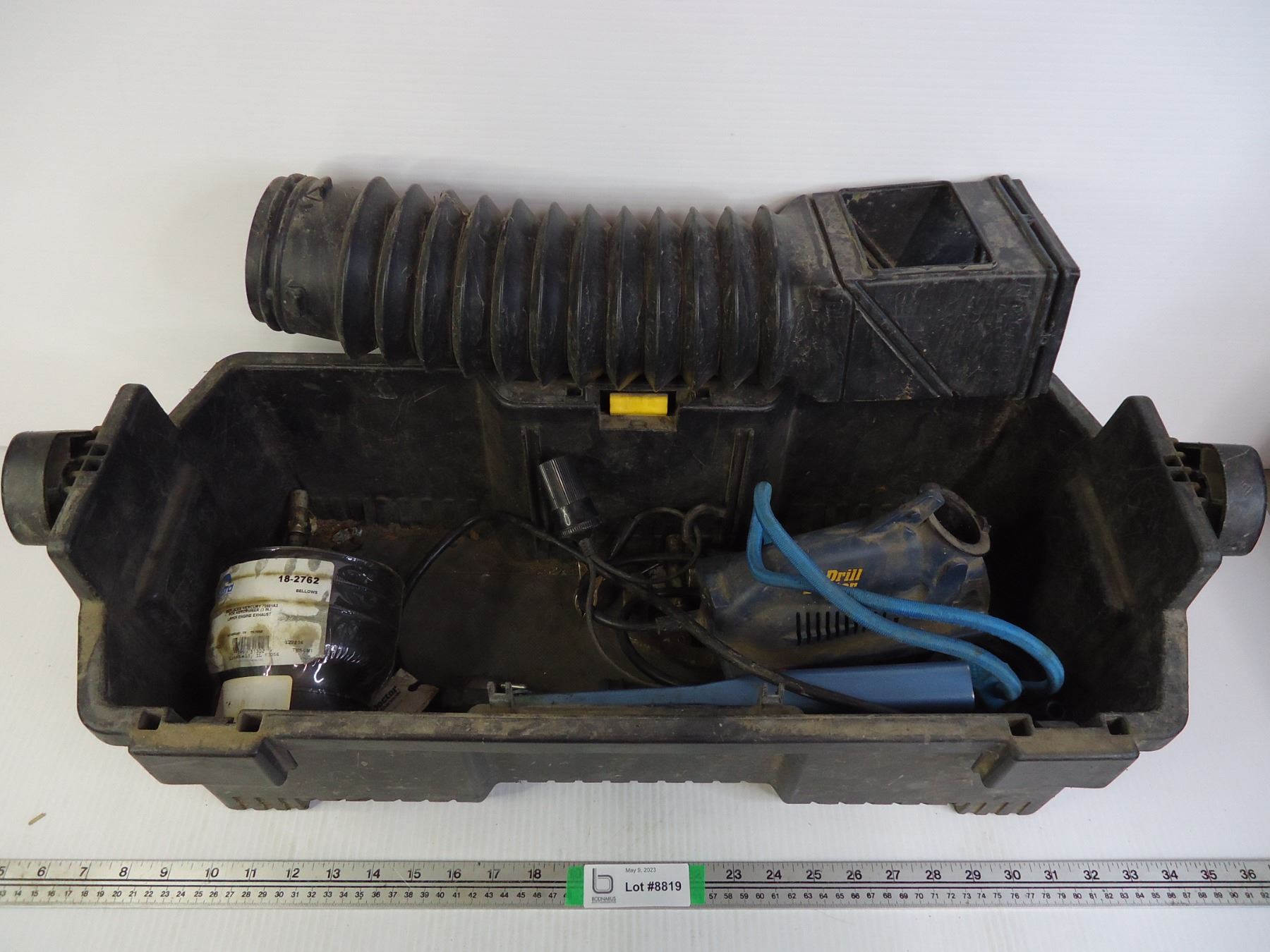 Plastic Tool Box with (2) Grease Guns and Misc. Items
