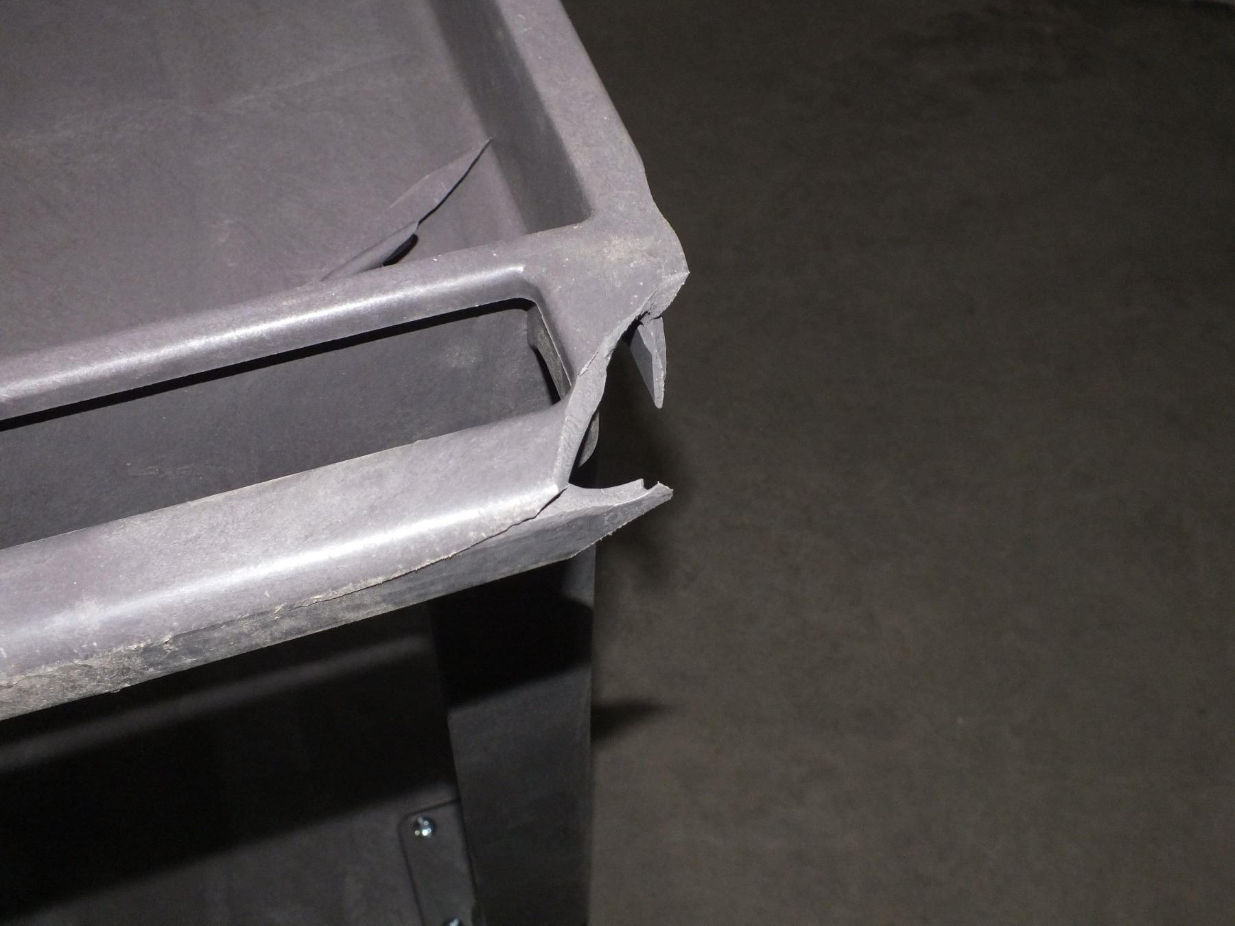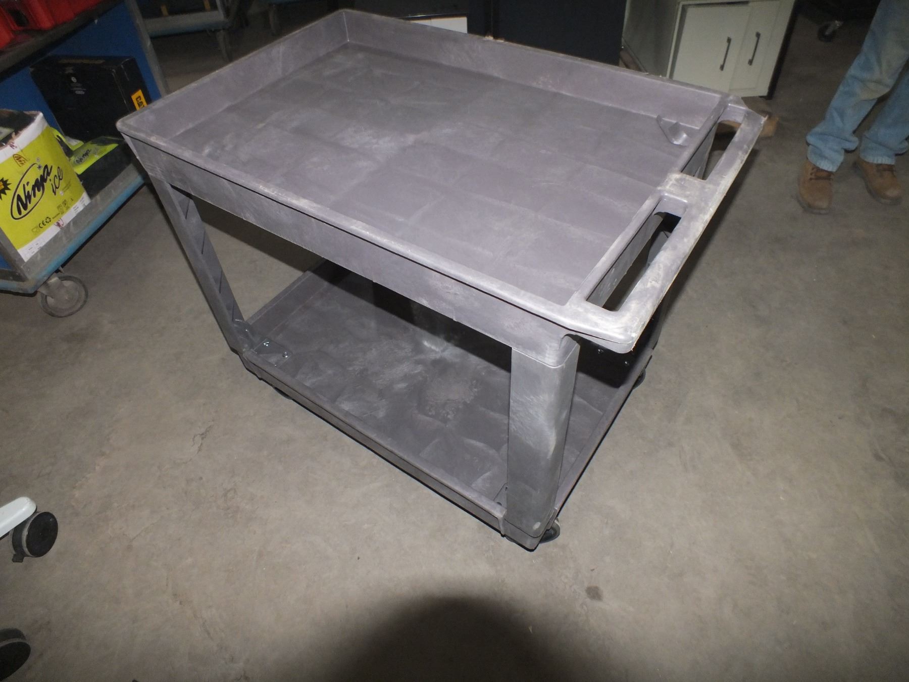 Plastic Tool Cart On Wheels, some damage as seen in photos, 40 1/2"l 25 1/2"w 33"h...like new
